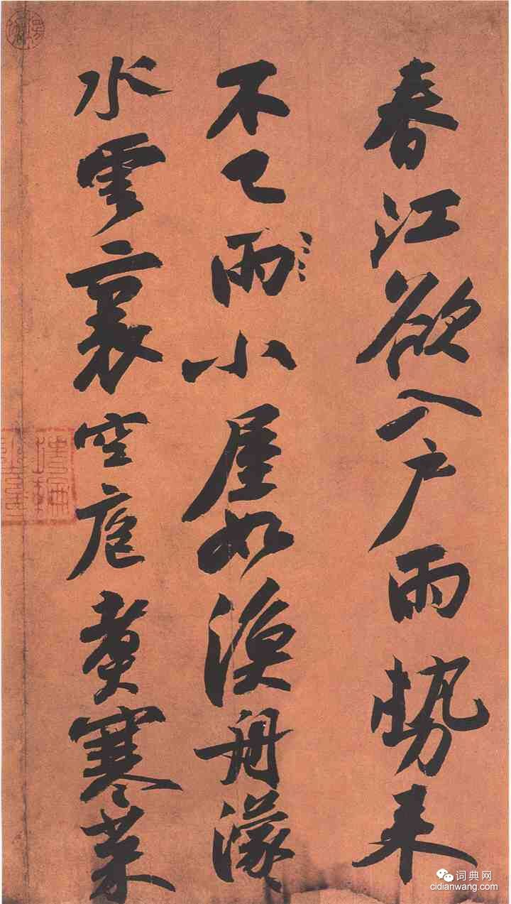 資源下載魏晉書法唐朝書法宋朝書法元朝書法明朝書法清朝書法近現代書法字典網>> 歷代書法>> 宋朝>> 蘇軾《寒食帖》,蘇軾黃州寒食帖(2)正文 蘇軾《寒食帖》,蘇軾黃州寒食帖(2)作者:蘇軾 書體:行書 首 頁 上一頁 1 2 3 下一頁 尾 頁蘇軾的相關書法作品:蘇軾楷書《豐樂亭記》 蘇軾《歸安丘園帖》 蘇軾行書《石恪畫維摩贊》 蘇軾小楷《金剛經》 蘇軾行書《答謝民師論文帖卷》 蘇軾·羅池廟碑 蘇軾行書《北游帖》 蘇軾行書《職事帖》 蘇軾行書《近人帖》 相關文章:吳寬行書《跋黃庭堅諸上座帖》 (行書)吳寬《跋黃庭堅“諸上座帖”》紙本行書 縱33cm 北京故宮博物院藏 ...傅增湘 跋陸機《平復帖》 (行書)傅增湘跋陸機《平復帖》,行書,故宮博物院藏。當年《平復帖》為恭王府所藏。1937...傅山《草書憑高瞰迥天怡心七言詩帖》 (草書)傅山 《草書憑高瞰迥天怡心七言詩帖》軸 紙本 113.5cm×53.5cm...虞世南《大運帖》 (楷書)【釋文】世南聞大運不測,天地兩平;風俗相承,帝基能厚;道清三百,鴻業六超;君壽九...范成大草書《春晚晴媚帖》 (草書)范成大《春晚晴媚帖》紙本 34.4×52.4cm 淳熙六年(1179)上海博物...黃侃《隸書鶯啼序 》 (隸書)黃侃《隸書頁》 湖北省博物館藏 釋文:鶯啼序 層陰傍樓散晚,悄梧飄暗戶。閉孤館詞...仇遠行書《莫景行詩引》 (行書)仇遠《莫景行詩引》紙本 35.6×84.3cm 北京故宮博物院藏 ...韓擇木楷書《南川縣主墓誌》 (楷書)韓擇木《南川縣主墓誌》 唐天寶十一年(752)立,志文二十一行,滿行二十三字,楷...漢碑隸書之精品《肥致碑》 (隸書)《肥致碑》全稱《河南梁東安樂肥君之碑》建於東漢建寧二年(一六九)五月,碑高九十七...吳昌碩《隸書村里家中五言聯》 (隸書)吳昌碩《隸書村里家中五言聯》紙本隸書 127.9×33.5cm×2 1924...