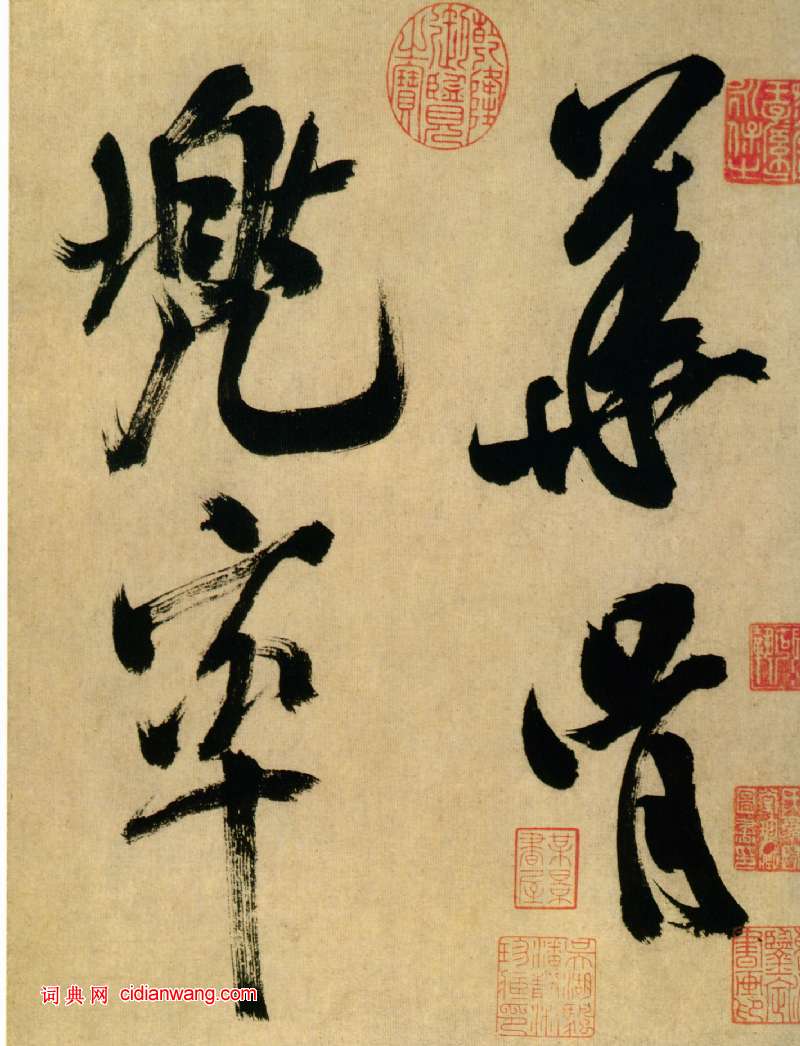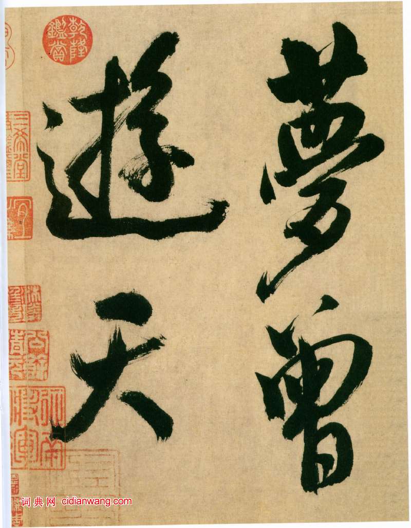 《多景樓詩冊》由11開冊頁組成,每頁紙本縱31.2厘米,橫53.1厘米,頗為壯觀。《多景樓詩冊》是米芾晚年的作品,用筆明顯老辣、厚重,間架欹側中見穩健,極為豪放,筆力雄偉,面對這幅書法作品,可以使人想像出米芾當時揮毫時“神遊八極,眼空四海”的氣魄。