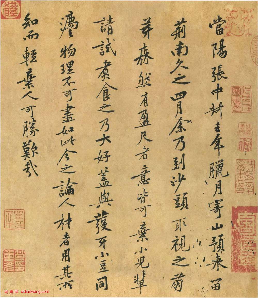 黃庭堅《山預帖》,行書,紙本,31.2×26.8cm,凡6行,84字。書於建中靖國元年(1101年)四、五月間。鈐有明內府稽察司半印、“張應申印”、“清鑒堂圖書印”、“笪重光印”等印記。《石渠寶笈初編》、《故宮書畫錄》等著錄。《清鑒堂帖》、《御刻三希堂石渠寶笈法帖》、《谷園摹古法帖》、《宋黃文節公法書》等收錄。現藏台北故宮博物院。