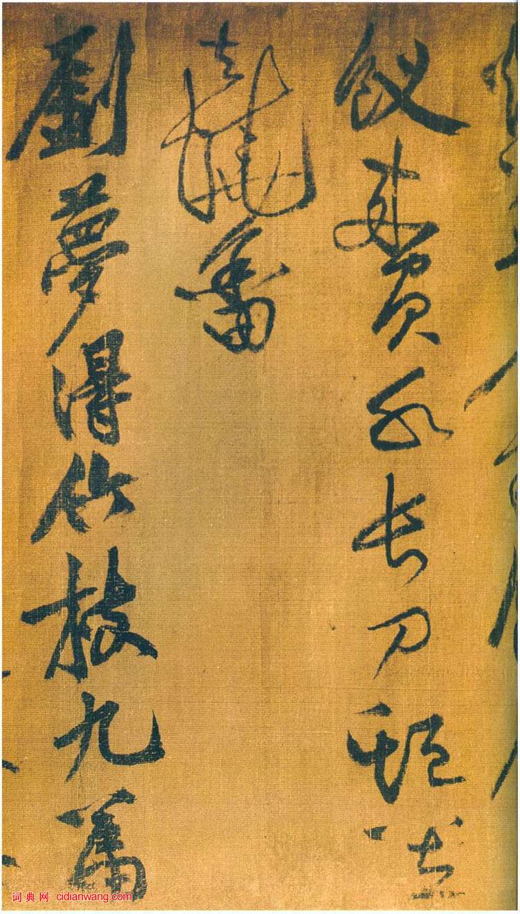 書法欣賞魏晉書法唐朝書法宋朝書法元朝書法明朝書法清朝書法近現代書法字典網>> 歷代書法>> 宋朝>> 黃庭堅草書《劉禹錫竹枝詞卷》(6)正文 黃庭堅草書《劉禹錫竹枝詞卷》(6)作者:黃庭堅 書體:草書 首 頁 上一頁 1 2 3 4 5 6 7 下一頁 尾 頁黃庭堅的相關書法作品:黃庭堅狂草《廉頗藺相如列傳》 黃庭堅草書《劉禹錫竹枝詞卷》 黃庭堅行書《李公麟五馬圖題記跋語》 黃庭堅《行書華嚴經疏卷》 黃庭堅《致景道十七使君尺牘》 黃庭堅《行書贈張大同卷》 黃庭堅《李白憶舊遊詩草書卷》 黃庭堅小楷《跋范仲淹“道服贊”》 黃庭堅行書《雪寒帖》 相關文章:曾熙隸書《雅量清言五言聯》 (隸書)曾熙《隸書雅量清言五言聯》紙本楷書 155×39cm×2 1903年作釋文:...徐渭 《墨葡萄》行書題款 (行書)徐渭 《墨葡萄》 軸 紙本 浙江省博物館藏 書法題款胡助·跋范仲淹《道服贊》 (楷書)胡助跋范仲淹《道服贊》,楷書,縱34.8cm,北京故宮博物院藏。蔡翛·致子通都監尺牘 (行書)【釋文】翛啟 辱手畢 伏承尊候萬福 至以感慰 承薰修未畢 來日不得晤見 豈任馳情...吳寬·行書蘇軾雪詞卷 (行書)吳寬《行書蘇軾雪詞卷》,紙本。香港藝術館虛白齋藏。黃庭堅·惟清道人帖 (行書)【釋文】惟清道人本貴部人,其操行智識,今江西叢林中未見其匹亞。昨以天覺堅欲以觀音...劉墉《行書花島月梅七言聯》 (行書)劉墉《行書花島月梅七言聯》花箋本行書 166×32cm×2 淮安市博物館藏釋...劉墉《行書句里舌端七言聯》 (行書)劉墉《行書句里舌端七言聯》蠟箋行書 93.5×21.2cm×2 安徽省博物...蘇軾《論書》原文與譯文(節錄) (不詳)蘇軾《論書》包括“論書”、“論古人書”、“自論書”等論述書法的材料,均摘自《東坡...武則天和慈禧,誰的書法更好?中國歷史上有兩個女人是不容迴避的,她們就是武則天和慈禧。兩人有許多共同之處,都是...