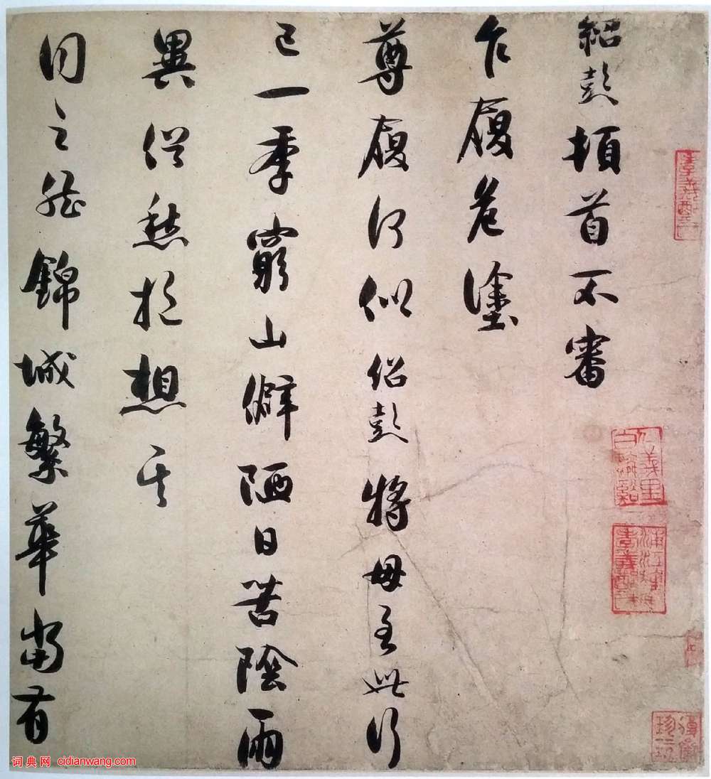 【釋文】紹彭頓首。不審乍履危塗。尊履何似。紹彭將母至此。行已一季。窮山僻陋。日苦陰雨。異俗愁抱。想其同之。然錦城繁華。當有可樂。又恐非使者事爾。職事區區粗遣。但 版曹新完法度頗勞應報。有以見教。乃所望也。紹彭頓首。
