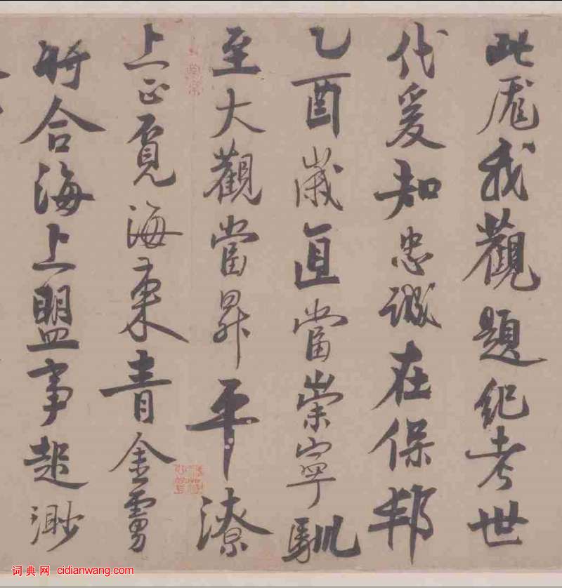 此為趙氏晚年之跡,筆力雄健,縱逸豪放,有黃庭堅書風。而結體瘦勁,中宮緊結,欹側俯仰之勢則師法米芾,自有標度,為其晚年代表作。書法獨具風氣韻淳古,筆法流暢,點畫鮮明,節奏強烈,忽大忽小,有肥有瘦,變化莫測。