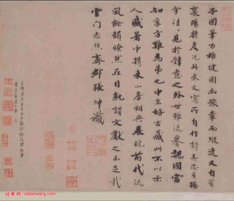 書法欣賞魏晉書法唐朝書法宋朝書法元朝書法明朝書法清朝書法近現代書法字典網>> 歷代書法>> 宋朝>> 趙孟堅行書 《題大年小景圖》(9)正文 趙孟堅行書 《題大年小景圖》(9)作者:趙孟堅 書體:行書 首 頁 上一頁 1 2 3 4 5 6 7 8 9 趙孟堅的相關書法作品:趙孟堅·跋褚遂良《倪寬贊》 趙孟堅行書 《題大年小景圖》 趙孟堅·自書詩卷 趙孟堅草書《致嚴堅中太丞尺牘》 相關文章:張旭《肚痛帖》神一樣的存在! (草書)唐代文宗皇帝李昂曾下詔書,以李白的詩歌、裴旻的劍舞、張旭的草書為“三絕”,可見書...莫是龍草書《陶潛移居詩軸》 (草書)莫是龍《陶潛移居詩軸》紙本 150×70cm 廣東省博物館藏釋文:春秋多佳...《九成宮》單字本,收藏吧! (楷書)歐陽詢 (557年一641年),漢族,唐朝潭州臨湘(今湖南長沙)人,字信本,楷書...饒介《蘭亭帖》 (行書)【釋文】蘭亭序並圓玉印借來,幸付之。琴軫萬勿憚煩,必致之耳。然欲劍合延平也。不覺...徐生翁《又有時見行書七言聯》 (行書)徐生翁《又有時見行書七言聯》 釋文:又有石榴才一幅,時見松櫟皆千圍。辰生先生屬。...歐陽詢行書《定武本蘭亭》宋拓本 (行書)唐太宗得王羲之《蘭亭序》真跡,命歐陽詢臨摹,刻石於學士院,拓賜近臣。五代梁移石汴...文徵明《草書七絕詩軸》 (草書)文徵明《草書七絕詩軸》 縱109.6厘米 橫30.6厘米 蘇州博物館藏釋文:玉泉...曾熙篆書《百歲一德八言聯》 (篆書)曾熙《篆書百歲一德八言聯》紙本篆書 168×38cm×2釋文:百歲之人古頌上...吳玉如《行書札記》 (行書)吳玉如《行書札記》 釋文:略 款識:迂叟寫付嘉祥存玩。 【資料來源】《書法》雜誌...清 趙世駿臨《雁塔聖教序》 (楷書)清代晚期,是書風丕變的急轉期。康有為持論尊碑卑帖,既著書立說,復身體力行。書壇翕...