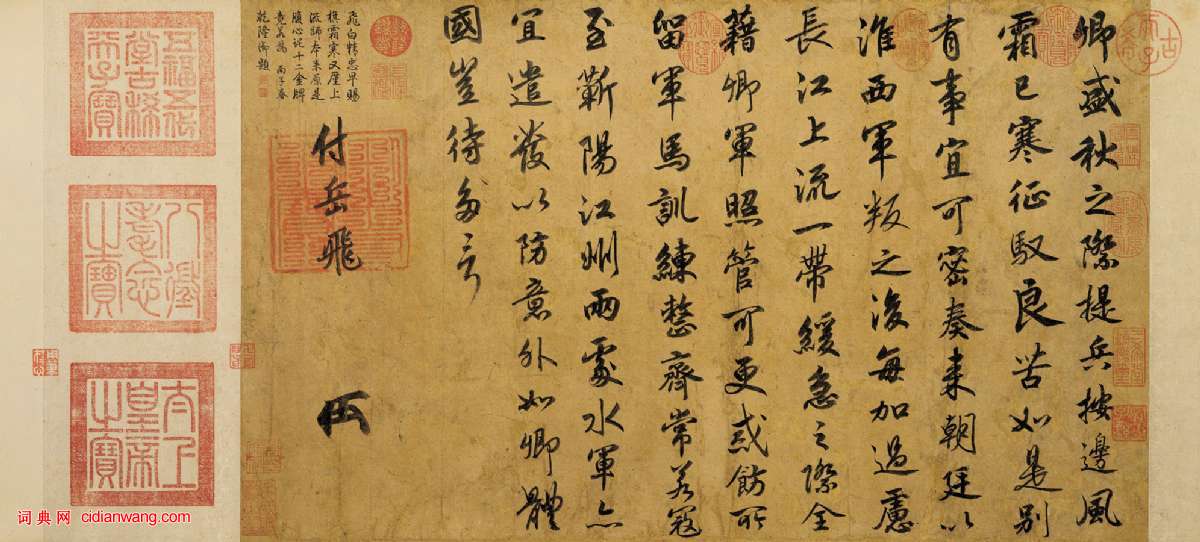 趙構《賜岳飛手敕》 紙本 行楷 36.7×67.5cm 紹興七(1137)年 台北故宮博物院藏