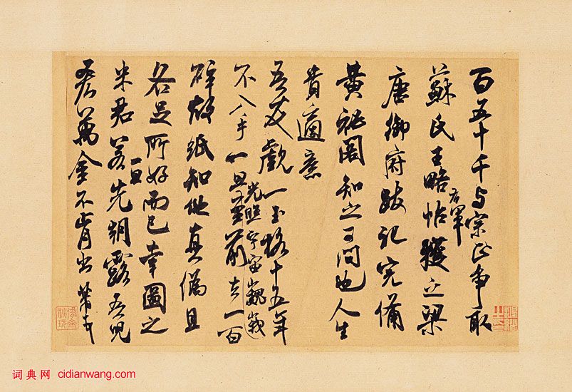 百五十千,與宗正爭取蘇氏《王略帖》(旁註:右軍),獲之。梁、唐御府跋記完備。黃秘閣知之,可問也。人生貴適意,吾友覷一玉格,十五年不入手,一旦光照宇宙,巍峨至前,去一百碎故紙,知他真偽,且各足所好而已,幸圖之!米君若一旦先朝露,吾兒吝,萬金不肯出。芾頓首。
