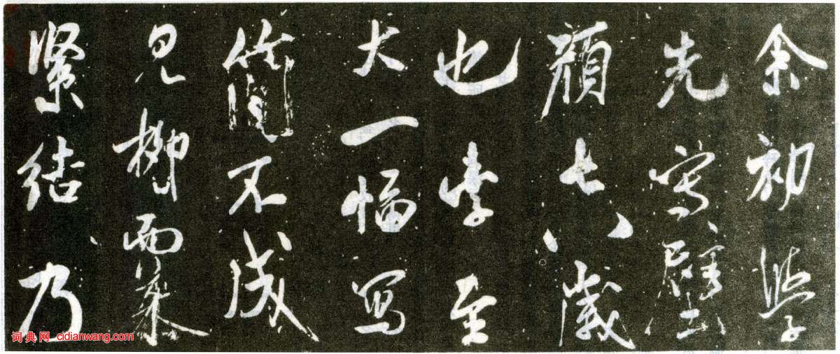 余初學先寫壁,顏七八歲也,字至大一幅,寫簡不成。見柳而慕緊結,乃學柳《金剛經》,久之,知出於歐,乃學歐。久之,如印板排算,乃慕褚而學最久。又慕段季轉折肥美,八面皆全。久之,覺段全繹展《蘭亭》,遂並看《法帖》,入晉魏平淡,棄鍾方而師師宜官,《劉寬碑》是也。篆便愛《咀楚》、《石鼓文》。又悟竹簡以竹聿行漆,而鼎銘妙古老焉。其書壁以沈傳師為主,小字,大不取也。