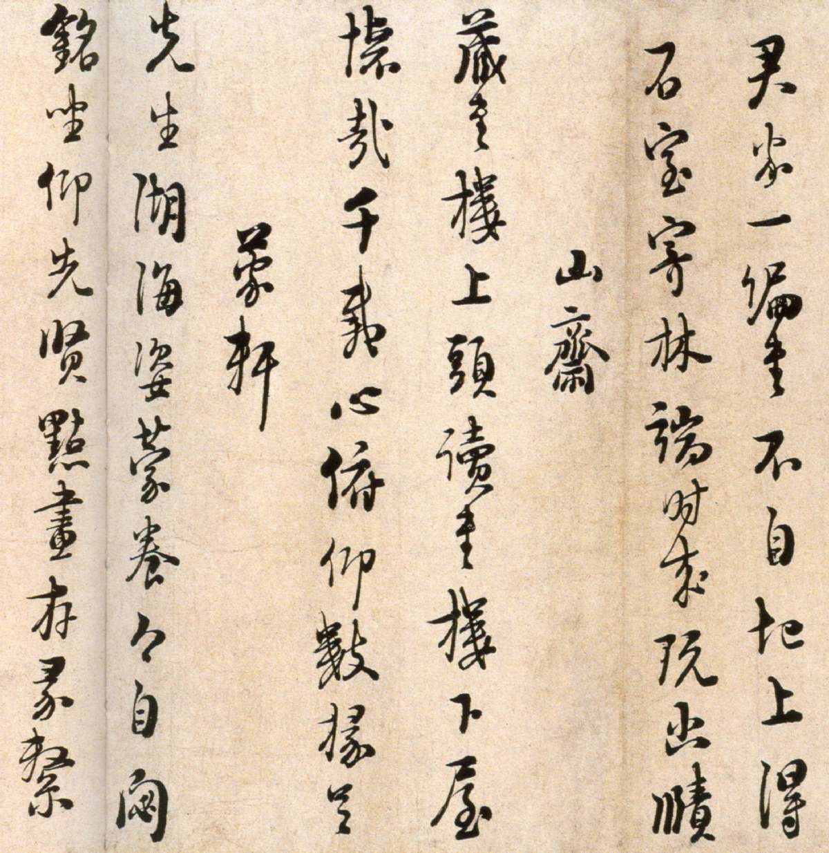 書法欣賞魏晉書法唐朝書法宋朝書法元朝書法明朝書法清朝書法近現代書法字典網>> 歷代書法>> 宋朝>> 朱熹行書《城南唱和詩卷》(4)正文 朱熹行書《城南唱和詩卷》(4)作者:朱熹 書體:行書 書樓君家一編書,不自圮上得。石室寄林端,時來玩幽賾。山齋藏書樓上頭,讀書樓下屋。懷哉千載心,俯仰數掾足。蒙軒先生湖海姿,蒙養今自閟。銘座仰先賢,點畫存彖系。首 頁 上一頁 1 2 3 4 5 6 7 8 9 10 下一頁 尾 頁朱熹的相關書法作品:朱熹行書《城南唱和詩卷》 朱熹草書《秋深帖》 朱熹《卜築帖》 朱熹《大桂驛中帖》 朱熹《論語集注殘稿》 朱熹《與彥修少府帖》 朱熹·跋歐陽修《集古錄跋》 相關文章:姚孟起楷書《陋室銘》 (楷書)《陋室銘》是唐代詩人劉禹錫所作。《陋室銘》聚描寫、抒情、議論於一體。通過描寫“陋...歷史上的狂草大師不可告人的秘密古詩四帖(局部) 作者張旭狂草,又稱“醉草”或“大草”,含有情感跳躍、奔放激越的...魏碑龍門二十品拓本 (魏碑)1.《比丘慧成為亡父始平公造像記》《比丘慧成為亡父始平公造像記》(公元498年)...文徵明·行書自作詩卷 (行書)釋文立春進賀。王殿千官拜冕旒,紫衣京兆在前頭。四時盛德初臨木,先日嚴寒已送牛。氣...文徵明小楷《偶適溪樓輒題二十韻帖》 (小楷)明代文徵明楷書尺牘大圖欣賞《偶適溪樓輒題二十韻帖》,尺寸:29x67厘米,台北故...董其昌《浚路馬湖記》 (行書)《浚路馬湖記》董其昌書,紙本,行書,縱29.3cm,橫607.5cm,132行。...梁啓超《贈允之楷書軸》 (楷書)梁啓超《贈允之楷書軸》楷書 124×31cm 嘉定博物館藏釋文:公之雲令德音孔...中峰明本書法欣賞,趙孟頫的師傅中峰明本畫像明本禪師(1263—1323),元朝僧人。俗姓孫,號中峰,法號智覺,...王時敏《隸書五律詩軸》 (隸書)王時敏《隸書五律詩軸》紙本隸書 137.7×57.8cm 廣東省博物館藏 釋文...唐刻宋拓晉唐小楷拓本八種大都會博物館藏晉唐小楷法書八種舊拓本: 1. 東晉 王羲之 小楷樂毅論 舊拓本 ...