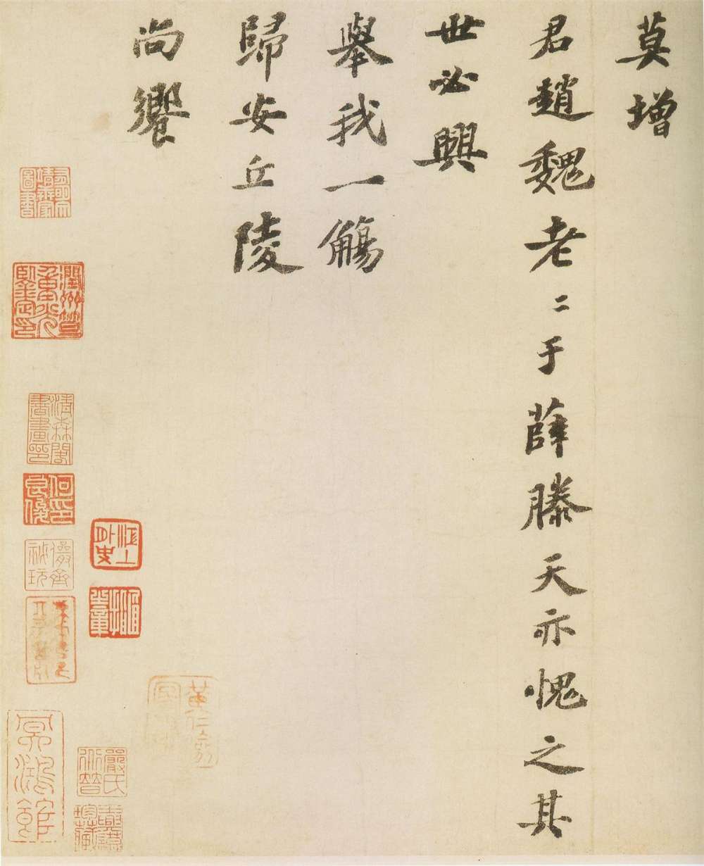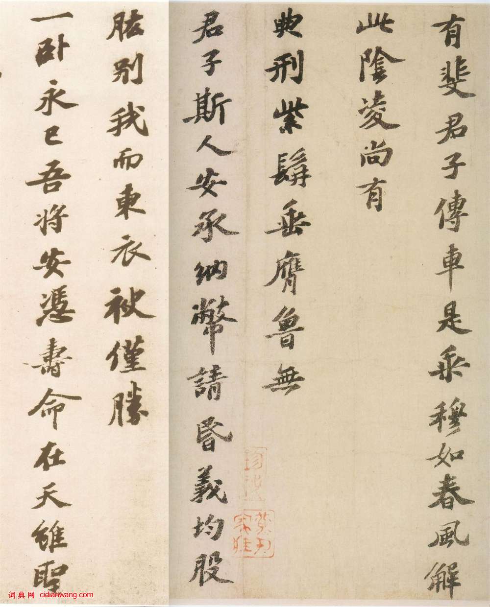 資源下載魏晉書法唐朝書法宋朝書法元朝書法明朝書法清朝書法近現代書法字典網>> 歷代書法>> 宋朝>> 蘇軾行楷《祭黃幾道文卷》(3)正文 蘇軾行楷《祭黃幾道文卷》(3)作者:蘇軾 書體:行楷 首 頁 上一頁 1 2 3蘇軾的相關書法作品:蘇軾·洞庭春色賦中山松醪賦合卷 蘇軾行書《次韻前篇》 蘇軾楷書《宸奎閣碑》 蘇軾行書《屏事帖》 蘇軾行書《新歲展慶帖》 蘇東坡《寒食帖》賞析 蘇軾楷書《司馬溫公神道碑》 蘇軾楷書《豐樂亭記》 蘇軾行書《陽羨帖》 相關文章:《董美人墓誌》北京大學藏本 (楷書)《董美人墓誌》全稱《美人董氏墓志銘》。隋開皇十七年(公元597年)刻,原石於清嘉...耶律楚材·送劉滿詩卷 (楷書)【釋文】雲宣黎庶半逋逃,獨爾千民按堵牢。已預天朝能吏數,清名何啻泰山高。庚子之冬...龔賢《行書經故里詩扇》 (行書)龔賢《行書“經故里”詩扇》 上海博物館藏 釋文:歸來非遠客,下馬淚雙垂。故里宛...劉墉《行書花島月梅七言聯》 (行書)劉墉《行書花島月梅七言聯》花箋本行書 166×32cm×2 淮安市博物館藏釋...歐陽詢書法結字36法這篇書論,就是唐代書法大家、楷法極則的創作者——歐陽詢總結出來的《書法結字三十六...黃自元·朱子治家格言 (楷書)【釋文】黎明即起,灑掃庭除,要內外整潔。既昏便息,關鎖門戶,必親自檢點。一粥一飯...王寵草書《水綠天微霽五言詩軸》 (草書)王寵《水綠天微霽五言詩軸》紙本草書 148×4.5cm 北京故宮博物院藏釋文:...解縉《草書詩帖》冊 (草書)解縉《草書詩帖》冊 紙本 十七開半 每開30.7×22.6cm 北京故宮博...王羲之《筆勢論十二章》釋文告汝子敬:吾察汝書性過人,仍未閒規矩。父不親教,自古有之。今述《筆勢論》一篇,一...王羲之草書《長風帖》臨摹本 (草書)王羲之《長風帖》(臨摹本)紙本草書 27.5×40.9cm 台北故宮博物院藏長...