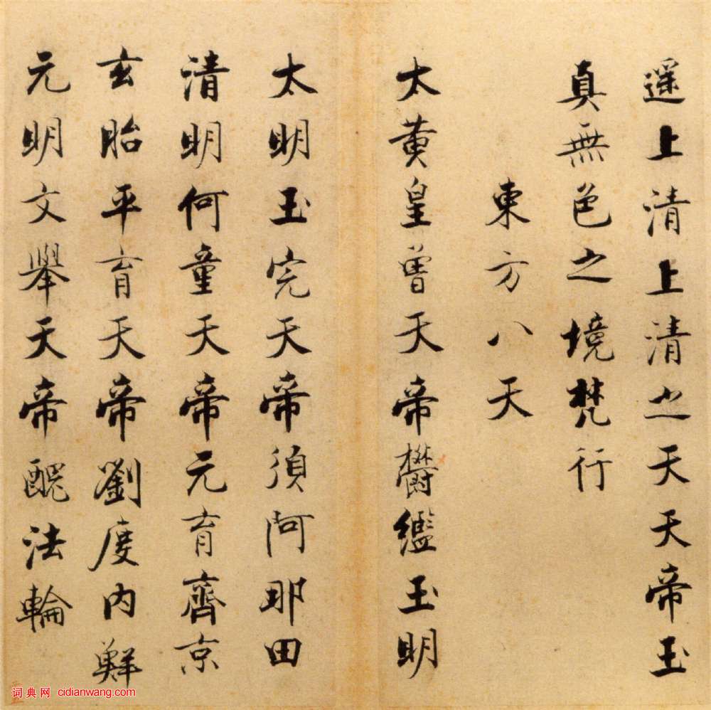 資源下載魏晉書法唐朝書法宋朝書法元朝書法明朝書法清朝書法近現代書法字典網>> 歷代書法>> 宋朝>> 張即之楷書《度人經帖》(13)正文 張即之楷書《度人經帖》(13)作者:張即之 書體:楷書 首 頁 上一頁 9 10 11 12 13 14 15 16 17 18 下一頁 尾 頁張即之的相關書法作品:張即之行書《台慈帖頁》 張即之楷書《度人經帖》 張即之行草《莊幹帖》 張即之行書《致殿元學士尺牘》 張即之楷書《雙松圖歌卷》 張即之日本禪院題字 張即之小楷《佛遺教經》 張即之行書《致尊堂太安人尺牘》 張即之·汪氏報本庵記 相關文章:朱熹行書《城南唱和詩卷》 (行書)朱熹《城南唱和詩卷》 紙本,手卷 31.5×275.5厘米。北京故宮博物院藏朱...蔡襄·致彥猷尺牘 (行書)【釋文】襄啟:大研盈尺,風韻異常,齋中之華,繇是而至。花盆亦佳品,感荷厚意。以珪...王志《一日無申帖》 (不詳)【釋文】臣六代從叔祖梁中書令臨汝安侯志書。一日,無申只□正屬雨氣方昏,得告深慰。...包世臣行書《致熙載札》 (行書)包世臣《致熙載札》紙本行書 23×13cm×2 日本私人藏【資料來源】《中國...蒲華《溪山春意圖並行書畫禪室隨筆扇》 (行書)蒲華《溪山春意圖並行書畫禪室隨筆扇》金箋行書 17.8×44cm 台北故宮博物...康有為行書《端景茂實五言聯軸》 (行書)康有為《端景茂實五言聯軸》 紙本行書 143×37cm×2釋文:端景緣直表...徐浩·不空和尚碑 (楷書)徐浩《不空和尚碑》正書碑刻。全稱《唐太興善寺故大德大辯正廣智三藏和尚碑銘並序》。...魯迅行書新體詩《我的失戀——由她去罷》 (行書)魯迅新體詩《我的失戀——由她去罷 》 27.2×24.1cm 1924年 上海...趙孟堅草書《致嚴堅中太丞尺牘》 (草書)趙孟堅《致嚴堅中太丞尺牘》紙本草書 25.5×33cm 台北故宮博物院藏釋文:...鄧石如篆刻作品欣賞 (篆書)鄧石如 (1743-1805),原名琰,字石如,又名頑伯,號完白山人。當時正值皖...