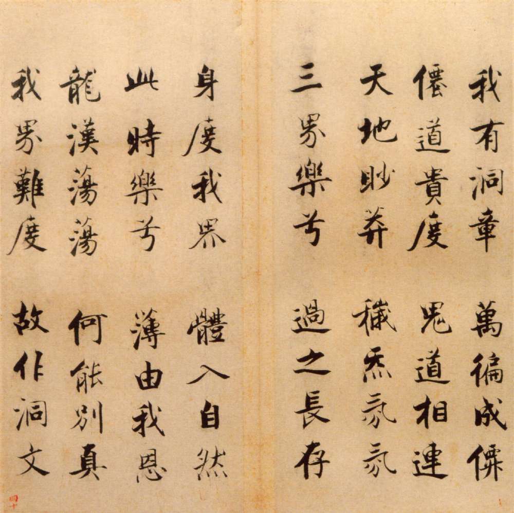 資源下載魏晉書法唐朝書法宋朝書法元朝書法明朝書法清朝書法近現代書法字典網>> 歷代書法>> 宋朝>> 張即之楷書《度人經帖》(21)正文 張即之楷書《度人經帖》(21)作者:張即之 書體:楷書 首 頁 上一頁 17 18 19 20 21 22 23 24 25 26 下一頁 尾 頁張即之的相關書法作品:張即之《斂襟談老氏詩楷書冊》 張即之小楷《華嚴經》殘冊 張即之大字楷書《書杜詩卷》 張即之行草《疇昔帖》 張即之行書《致尊堂太安人尺牘》 張即之小楷《佛遺教經》 張即之行書《致尊堂太安人尺牘》 張即之楷書《雙松圖歌卷》 張即之行楷《金剛般若波羅蜜經》 相關文章:趙佶楷書瘦金體《牡丹詩帖》 (瘦金體)宋 趙佶《牡丹詩帖》紙本 楷書 瘦金體 34.8cm×53.3cm 台北故宮博...文徵明行草《喜雨七言詩扇》 (行草)文徵明 《“喜雨”七言詩扇》行草書 上海博物館藏釋文:一雨蕭然萬瓦鳴,好風如水...曾熙《篆書永弟中子七言聯》 (篆書)曾熙《篆書永弟中子七言聯》紙本篆書 130×25cm×2 1920年作釋文:...乙瑛碑 (隸書)全稱《漢魯相乙瑛請置孔廟百石卒史碑》,又稱《孔廟置守廟百石卒史碑》、《孔龢碑》。...張瑞圖行楷《送康侯楊外孫北上七篇》 (行楷)張瑞圖《送康侯楊外孫北上七篇》冊 金箋 行楷書 冊頁 每開20.4×13cm...孟繁禧行書《心經》 (行書)孟繁禧,1954年出生於北京,祖籍山東,自幼潛心學習書法,受教於康雍先生,尤擅歐...蔡襄《離都帖》 (行書)【釋文】襄啟。自離都至南京。長子勻感傷寒七日。遂不起此疾。南歸殊為榮幸。不意災禍...朱熹《論語集注殘稿》 (草書)【釋文】子曰:“仁者其言也訒。”[訒,音刃。訒, 忍也, 難也。仁者心存而不放,...范成大行草《中流一壺帖》 (行草)范成大《中流一壺帖》紙本 行草書 31.8×42.4cm 北京故宮博物院藏釋...蒲華行書《贍智遒文八言聯》 (行書)蒲華《行書贍智遒文八言聯》紙本行書,172.2×34.8cm×2,台北故宮博...