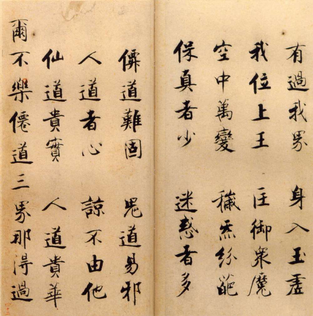 資源下載魏晉書法唐朝書法宋朝書法元朝書法明朝書法清朝書法近現代書法字典網>> 歷代書法>> 宋朝>> 張即之楷書《度人經帖》(22)正文 張即之楷書《度人經帖》(22)作者:張即之 書體:楷書 首 頁 上一頁 18 19 20 21 22 23 24 25 26 27 下一頁 尾 頁張即之的相關書法作品:張即之行書《台慈帖頁》 張即之楷書《度人經帖》 張即之《斂襟談老氏詩楷書冊》 張即之行書《棐茗帖》 張即之·汪氏報本庵記 張即之行書《致尊堂太安人尺牘》 張即之行書《致殿元學士尺牘》 張即之楷書《雙松圖歌卷》 張即之小楷《華嚴經》殘冊 相關文章:趙孟頫行書《半畝田帖》 (行書)元代趙孟頫《半畝田帖》吳鎮《草書心經卷》 (草書)吳鎮《草書心經卷》紙本 29.3×203厘米 1340年 北京故宮博物院藏 可...包世臣《行書玉笈瓦當八言聯》 (行書)包世臣《行書玉笈瓦當八言聯》灑金箋本行書 152×28.5cm×2 西泠印社...行草書法的虛實處理示例虛實處理,貫穿於書法的始終,沒有虛實,沒有矛盾,就如同沒有矛盾衝突的戲劇一樣,會...米芾《盛制帖》 (行草)【釋文】盛制珍藏榮感。日夕為相識拉出,遂未得前。見寒光之作,固所願也。一兩日面納...王守誠《跋唐人臨王獻之飛鳥帖》 (小楷)王守誠字君實,元朝文學家,詩人。太原陽曲(今屬山西)人。氣宇和粹,性好學。從鄧文...來楚生隸書《養成準備七言聯》 (隸書)來楚生《隸書養成準備七言聯》 65×11cm×2 私人藏【資料來源】《海派代...薛紹彭行草《雜書卷》 (行草)薛紹彭《雜書卷》 行草書,紙本,26.1x303.5 cm 台北故宮博物院藏 此...西漢河西簡牘遺墨 (隸書)河西地區的主體地貌是荒漠戈壁,南面是東西走向綿延千里的祁連山脈,北側是騰格里大沙...楊維楨行書《致理齋明府尺牘》 (行書)楊維楨《致理齋明府尺牘》 紙本行書 28.8×51.1cm台北故宮博物院藏 元...