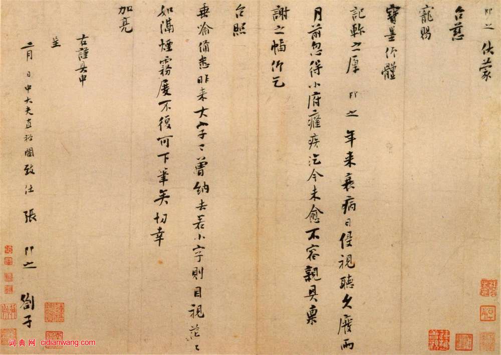 此帖結銜稱“致仕”,應作於南宋景定年間(1260-1264),故為張即之老年之筆。書法精勁峭利,無衰退氣象。
