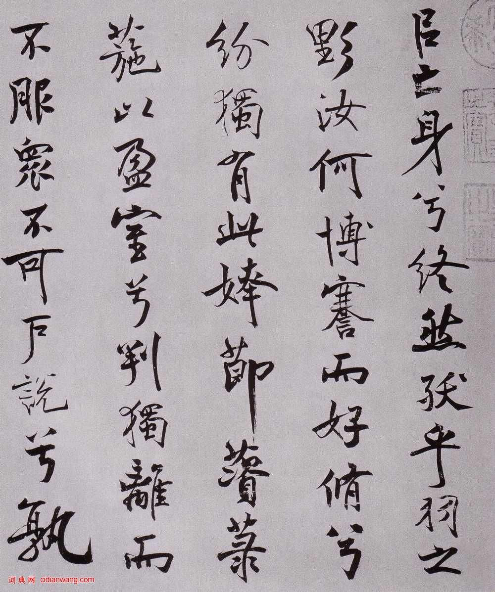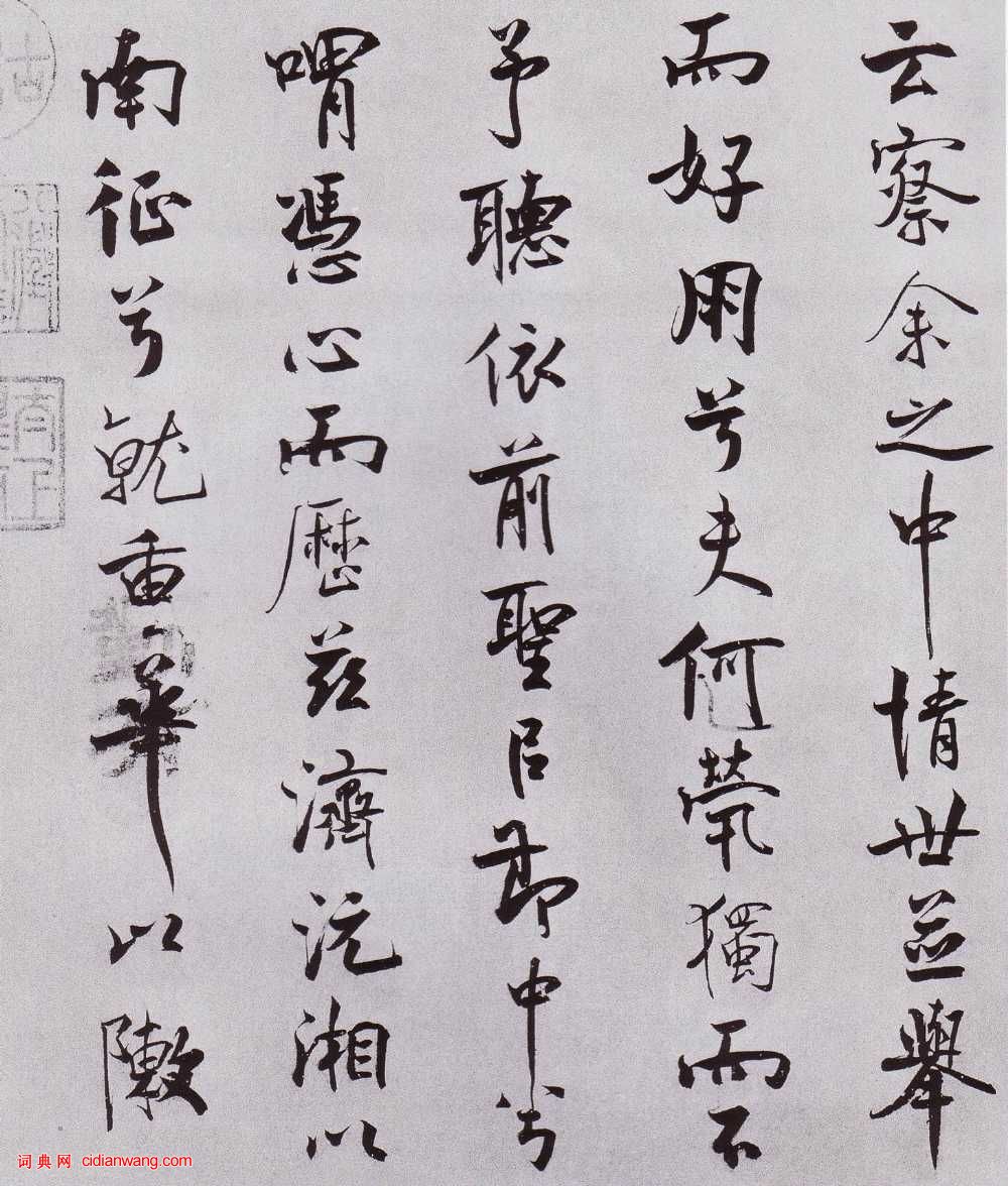 資源下載魏晉書法唐朝書法宋朝書法元朝書法明朝書法清朝書法近現代書法字典網>> 歷代書法>> 宋朝>> 米芾行書《離騷經》(11)正文 米芾行書《離騷經》(11)作者:米芾 書體:行書 首 頁 上一頁 7 8 9 10 11 12 13 14 15 16 下一頁 尾 頁米芾的相關書法作品:米芾《值雨帖》 米芾《惡札帖》 米芾·蘇太簡參政帖 米芾《晉紙帖》 米芾《韓馬帖》 米芾草書《吾友帖》 米芾行書《方圓庵記》 米芾·提刑殿院帖 米芾·戲成詩帖 相關文章:西漢隸書《銀雀山漢簡》 (隸書)《銀雀山漢簡》 《銀雀山漢簡》於一九七二年四月間在山東臨沂銀雀山的兩座前漢墓中出...王寵小楷《辛巳書事詩七首》 (小楷)王寵《辛巳書事詩七首》,嘉靖甲申(1524)五月二十三日,台北故宮博物院藏釋文:...文徵明·行書卷 (行書)文徵明《行書卷》,絹本,39.4×565.7厘米。廣東省博物館藏。吳寬行書《和體齋賞荷詩一首扇面》 (行書)吳寬《和體齋賞荷詩一首扇面》紙本金箋行書 17.5×49.5cm 美國紐約大都...伊秉綬隸書《江山冰雪五言聯》 (隸書)伊秉綬《隸書聯》此作品見於 中國嘉德2007秋季拍賣會估價:RMB 8...董其昌楷書《五言古詩句》 (楷書)董其昌八十歲楷書作品欣賞《五言古詩句》紙本,60.9x169厘米。釋文:春至鶬鶊...坐姿與執筆書法講座問題一:古人怎樣寫字古人用什麼坐具?二、古人當時怎樣坐?三、古人當時怎樣執筆?四...曾熙楷書《溪流天廓五言聯》 (楷書)曾熙《楷書溪流天廓五言聯》紙本楷書 78×18cm×2 1915年作釋文:溪...趙孟頫行書臨褚遂良《枯樹賦》 (行書)趙孟頫行書臨褚遂良《枯樹賦》,大德三年(1299)九月二日書。大德三年(1299...柳貫·跋范仲淹《道服贊》 (楷書)柳貫跋范仲淹《道服贊》,楷書,縱34.8cm,北京故宮博物院藏。