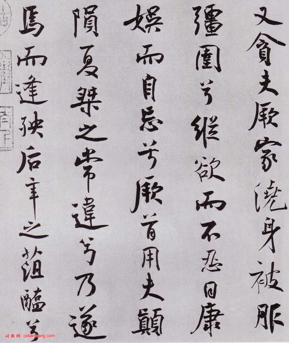 資源下載魏晉書法唐朝書法宋朝書法元朝書法明朝書法清朝書法近現代書法字典網>> 歷代書法>> 宋朝>> 米芾行書《離騷經》(12)正文 米芾行書《離騷經》(12)作者:米芾 書體:行書 首 頁 上一頁 8 9 10 11 12 13 14 15 16 17 下一頁 尾 頁米芾的相關書法作品:米芾·蜀素帖 米芾行書《蕭閒堂記》附題跋 米芾·穰侯出關詩帖 米芾行書《珊瑚帖、復官帖》 米芾·歲豐帖 米芾·戲成詩帖 米芾《陳攬帖》 米芾·蘇太簡參政帖 米芾《賀鑄帖》 相關文章:王文治《行書七言詩軸》 (行書)王文治《行書七言詩軸》 紙本 縱124厘米 橫38.8厘米 田家英小莽蒼蒼齋藏釋...7位京劇大師書法欣賞20世紀20年代,觀眾公認余叔岩、馬連良、言菊朋、高慶奎為四大鬚生。後來高慶奎嗓...張即之·汪氏報本庵記 (行楷)張即之《汪氏報本庵記》,紙本,行楷,縱29.3厘米,橫91.4厘米。小字行書38...倪元璐《行草“共曉承明貴”五言律詩軸》 (行草)倪元璐《行草“共曉承明貴”五言律詩軸》 北京故宮博物院藏釋文:共曉承明貴,漢臣殊...了庵清欲行書《法文》 (行書)法文 紙本 行書 27.7 x 73.3cm 日本東京國立博物館藏(松平直亮氏寄...胡助·跋范仲淹《道服贊》 (楷書)胡助跋范仲淹《道服贊》,楷書,縱34.8cm,北京故宮博物院藏。葛郛·跋李公麟《瀟湘臥遊圖》 (楷書)葛郛跋李公麟《瀟湘臥遊圖》,楷書。東京國立博物館藏。王鐸《米芾行書天馬賦跋》 (小楷)王鐸《米芾行書天馬賦跋》,小楷。王鐸小楷自家模樣,《米芾行書天馬賦跋》似以更自由...王直·題文同《墨竹圖》 (行書)王直題文同《墨竹圖》,行書,台北故宮博物院藏。沙孟海《楷書集易林八言聯 》 (楷書)沙孟海《楷書集易林八言聯 》紙本 158×34cm×2 1949年 沙孟海書...