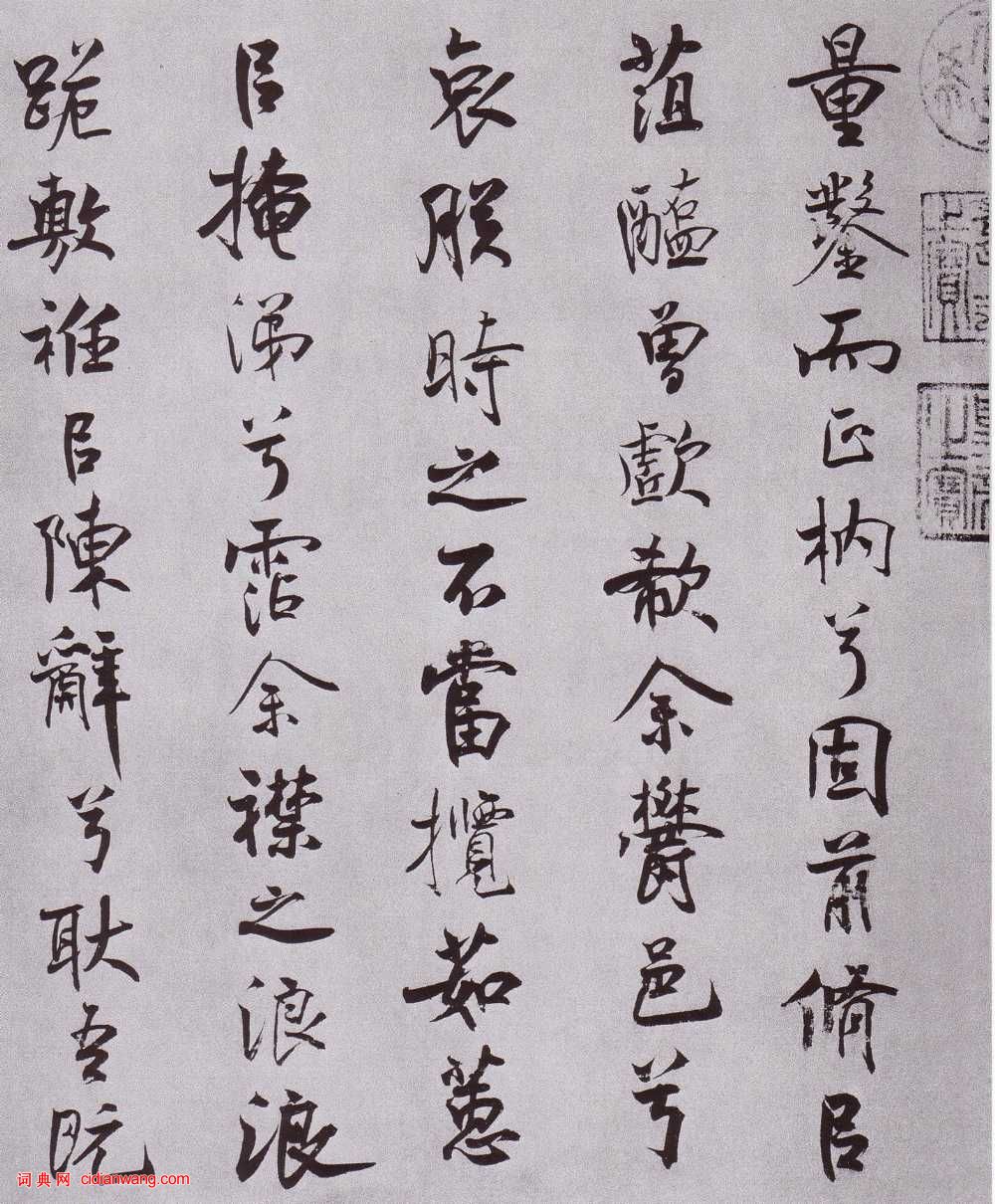 資源下載魏晉書法唐朝書法宋朝書法元朝書法明朝書法清朝書法近現代書法字典網>> 歷代書法>> 宋朝>> 米芾行書《離騷經》(14)正文 米芾行書《離騷經》(14)作者:米芾 書體:行書 首 頁 上一頁 10 11 12 13 14 15 16 17 18 19 下一頁 尾 頁米芾的相關書法作品:米芾·提刑殿院帖 米芾·致伯修老兄尺牘 米芾大字行書《研山帖》 米芾《惠柑帖》 米芾行書《叔晦帖》 米芾·行書三札卷 米芾《晉紙帖》 米芾《拜中嶽命作》 米芾《惡札帖》 相關文章:王鴻緒《行書杜甫詩軸》 (行書)王鴻緒《行書杜甫詩軸》紙本行書 95×56cm 重慶市博物館藏。釋文:十日畫一...黃道周《草書自作五言詩軸》 (草書)黃道周《草書自作五言詩軸》 綾本草書 138.5×48.9cm 南通博物苑藏釋...李東陽草書《自書詩》 (草書)明李東陽行草自書詩卷,該卷作於正德八年(1513年),作者時年67歲。所作的詩有...吳大澂篆書《從善有懷八言聯》 (篆書)吳大澂《從善有懷八言聯》篆書169.4×35×2 台北故宮博物院藏 ...沙孟海《行書對聯》 (行書)《行書對聯》轉自中華博物網釋文:鏤金刻石; 會文稱仁。——1988年題西泠印社創...林散之談書法,如何脫俗 (草書)我不是天才,只是較為勤奮而已。——林散之林散之(1898-1989)名霖,又名以...鄭望之·向過帖 (行書)【釋文】望之頓首再拜。向過婺源,山川草木,大勝饒信間。明日越芙蓉嶺,到新安,江山...釋擔當《行草書四言詩軸》 (行草)《行草書四言詩軸》 紙本 135.2X31.3cm 南京博物院藏 ...王徽之·新月帖 (行楷)【釋文】臣九代三從伯祖晉黃門郎徽之書。二日,告□氏女,新月哀摧不自勝,奈何奈何。...范成大行草《辭免帖》 (行草)范成大《辭免帖》紙本 32.9×42.8cm 淳熙八年(1181) 台北故宮博...