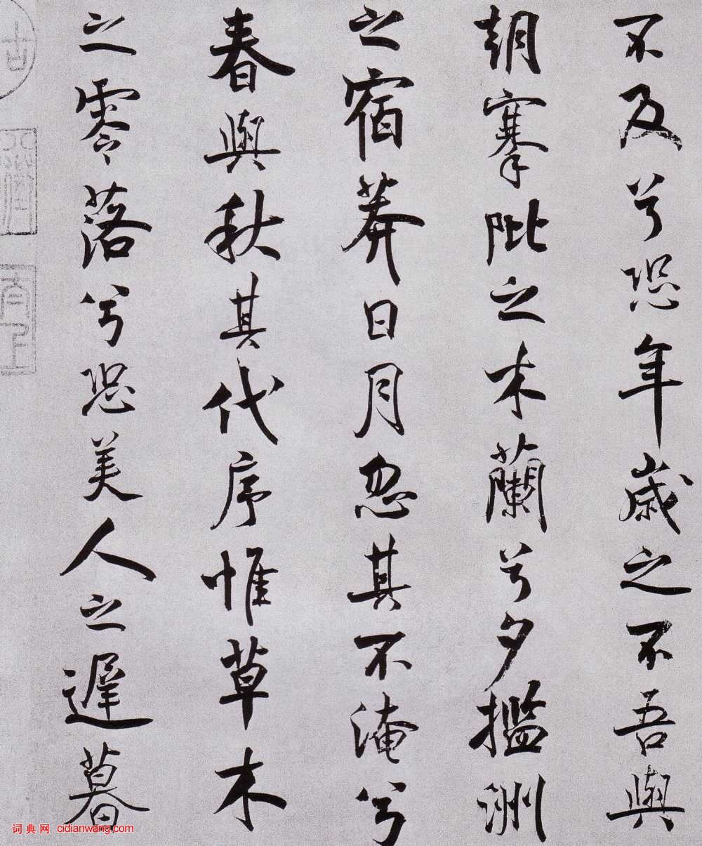 書法欣賞魏晉書法唐朝書法宋朝書法元朝書法明朝書法清朝書法近現代書法字典網>> 歷代書法>> 宋朝>> 米芾行書《離騷經》(3)正文 米芾行書《離騷經》(3)作者:米芾 書體:行書 首 頁 上一頁 1 2 3 4 5 6 7 8 9 10 下一頁 尾 頁米芾的相關書法作品:米芾《篋中帖》 米芾行草《樂兄帖》 米芾草書《臈白帖》 米芾行書《海月都師帖》 米芾·德忱帖 米芾·淡墨秋山詩帖 米芾大字行書《研山帖》 米芾行書《張季明帖》 米芾·秋暑憩多景樓帖 相關文章:趙佶楷書《夏日詩帖》 (楷書)趙佶《夏日詩帖》紙本 楷書 33.7×44.2cm 北京故宮博物院藏 詩帖鈴“...邢侗《行書岑參七言絕句》 (行書)邢侗《行書岑參七言絕句》軸 綾本 170×26厘米 上海博物館藏 ...黃庭堅·跋李公麟《五馬圖卷》 (行書)黃庭堅跋李公麟《五馬圖卷》,行書。釋文:余嘗評伯時人物似南朝諸謝中有邊幅者。然朝...金勉《蕪城賦》 (楷書)選自《契蘭堂帖》《蕪城賦》,鮑明達。彌迆平原,南馳蒼梧漲海,北走紫塞雁門。柂以漕...龔賢行書《魚躍鶯啼五言聯》 (行書)《行書“魚躍鶯啼”五言聯》紙本行書 日本藏 釋文:魚躍清波澈,鶯啼眾綠深。半畝...文徵明89歲所臨《蘭亭序》 (行書)文徵明畫像文徵明是明代中後期最著名的書法家、畫家。書法上與祝允明、王寵並譽為“吳...歐陽詢《九成宮醴泉銘》高清拓片 (楷書)九成宮醴泉銘(醴音lǐ, 醴泉意甜美的泉水)是唐代碑刻,公元632年鐫立於麟遊...伊秉綬行書《薔薇花詩軸》 (行書)伊秉綬《行書薔薇花詩軸》紙本行書 109.9×49.9cm 遼寧省博物館藏 釋...倪瓚小楷題陳惟允《孟郊詩意圖》 (小楷)題陳惟允《孟郊詩意圖》1365 台北故宮博物院藏釋文:慈母手中線,遊子身上衣。臨...摩崖石刻《何君閣道碑》 (隸書)《何君閣道碑》《何君閣道碑》|系東漢光武帝中元二年(即公元57年)所刻。這是史有...