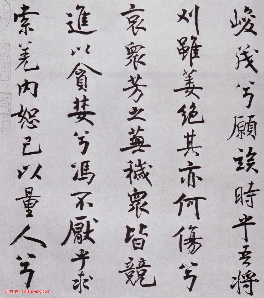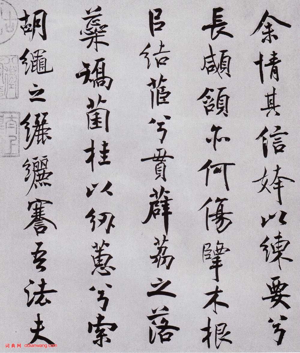 書法欣賞魏晉書法唐朝書法宋朝書法元朝書法明朝書法清朝書法近現代書法字典網>> 歷代書法>> 宋朝>> 米芾行書《離騷經》(6)正文 米芾行書《離騷經》(6)作者:米芾 書體:行書 首 頁 上一頁 2 3 4 5 6 7 8 9 10 11 下一頁 尾 頁米芾的相關書法作品:米芾行書《蕭閒堂記》附題跋 米芾·聞張都大宣德尺牘 米芾草書《吾友帖》 米芾行書《天馬賦》並序拓本 米芾《真酥帖》 米芾·行書三札卷 米芾行書《叔晦帖》 米芾《清和帖》 米芾·焚香帖 相關文章:東漢隸書《朝侯小子殘石》 (隸書)《朝侯小子殘石》 東漢 故宮博物院藏 圖片點擊放大《朝侯小子殘石》出土於陝西長...何紹基行書《錄黃山谷語軸》 (行書)何紹基《行書錄黃山谷語軸》紙本行書 129×61.3cm 山東省博物館藏釋文:...趙孟頫《真草千字文》 (真草)趙孟頫傳世書法作品很多,而且各體都有。以楷書和行書為最。趙孟頫《真草千字文》未署...黃道周行書《贈眉仲戴蓬萊即事詩軸》 (行書)黃道周《贈眉仲戴蓬萊即事詩軸》絹本行書 192.5×49.5cm 崇禎十七年(...曾熙篆書《受書易衣五言聯》 (篆書)曾熙《篆書受書易衣五言聯》紙本篆書 148×35cm×2 1918年作釋文:...王守仁行書《奉壽西岡羅老先生詩》 (行書)王守仁《奉壽西岡羅老先生詩》卷 紙本 行書 27.6×258.2cm 正德十一...王鐸行書《七月寫懷五律詩》卷 (行書)王鐸《七月寫懷五律詩》卷,自署書於崇禎十三年。行書。自作詩4首。凡37行,共24...蘇轍《見訪帖》 (行書)蘇轍《見訪帖》,1089年(元祐四年),行書,25.2×24.2cm。台北故宮...吳熙載《篆書心情天地七言聯》 (篆書)吳熙載《篆書心情天地七言聯》紙本篆書 127.5×27.5cm×2 1863...王羲之·姨母帖 (行楷)【釋文】十一月十三日,羲之頓首、頓首。頃遘姨母哀,哀痛摧剝,情不自勝。奈何、奈何...