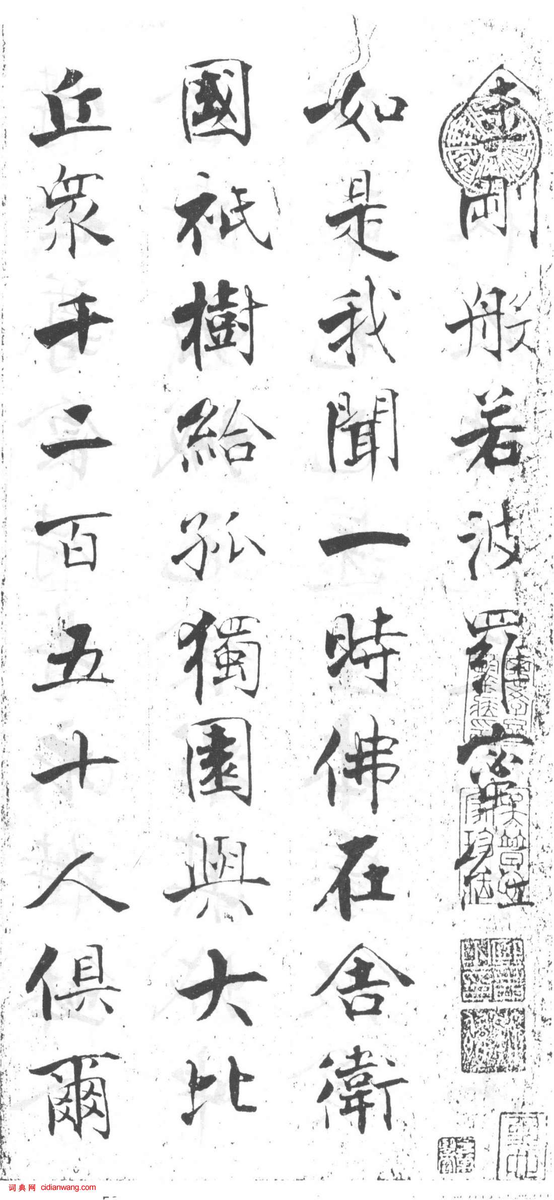 《金剛般若波羅蜜經》,張即之書於淳祐六年(1246)。張即之行楷妙絕南宋,此張即之手書《金剛般若波羅蜜經》,是其晚年書法精品。下筆簡捷凝鍊,運筆堅實峻健,點畫顧盼生情;結字俊秀而骨力遒勁,使字字結體生動明快,清爽不落俗套。每個字中十分注意筆畫中的變化,其筆畫的粗細、伸縮舒展皆隨機而作,卻又不失法度,是獨具匠心的書作。故此書跡具有強烈的藝術感染力,為一代楷書名作。