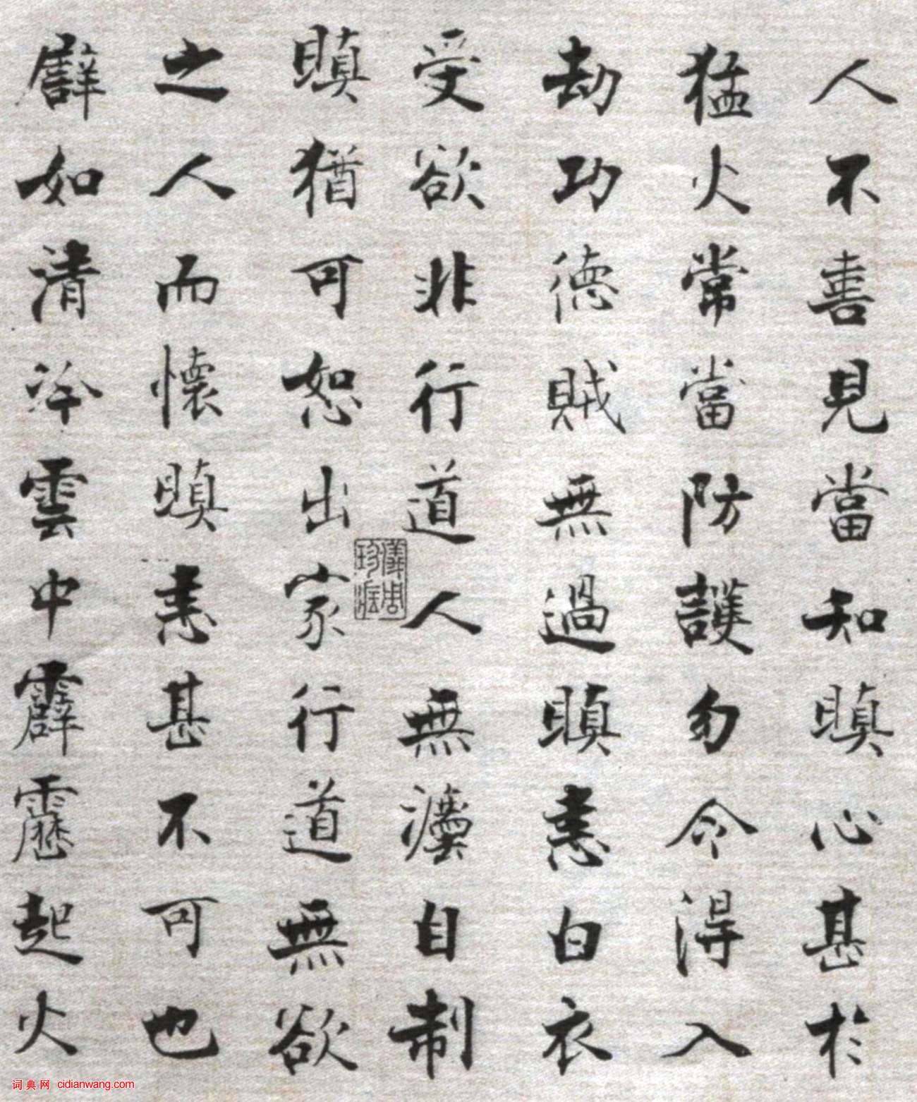資源下載魏晉書法唐朝書法宋朝書法元朝書法明朝書法清朝書法近現代書法字典網>> 歷代書法>> 宋朝>> 張即之小楷《佛遺教經》(8)正文 張即之小楷《佛遺教經》(8)作者:張即之 書體:小楷 首 頁 上一頁 4 5 6 7 8 9 10 11 12 13 下一頁 尾 頁 全文2017-1-27 15:12:39 張即之的相關書法作品:張即之行書《致尊堂太安人尺牘》 張即之楷書《度人經帖》 張即之大字楷書《書杜詩卷》 張即之小楷《華嚴經》殘冊 張即之·汪氏報本庵記 張即之行書《致尊堂太安人尺牘》 張即之楷書 《書李衎墓志銘》卷 張即之日本禪院題字 張即之《斂襟談老氏詩楷書冊》 相關文章:倪元璐《行書已作不棲鴉五言律詩》 (行書)倪元璐《行書“已作不棲鴉”五言律詩》紙本行書 130.2×60.4cm 上海...徐守和行書《跋王獻之保母帖》 (行書)明,徐守和《跋王獻之保母帖》,和郭右之(郭天錫)保母帖贊,行書釋文:《和郭右之保...四大青銅器國寶與書法之緣【導讀】清代晚期,在有“青銅器故鄉”之稱的陝西,出土了毛公鼎、大盂鼎、散氏盤、虢...文徵明行書《自書五言詩扇》 (行書)文徵明《行書自書五言詩扇》金箋行書 19.1×55cm 北京故宮博物院藏釋文:...趙孟頫《吳興賦》 (行書)趙孟頫墨跡《吳興賦》,手卷,絹本,縱25.2、橫282.3厘米,首題“吳興賦”,...蔡襄《陶生帖》 (草書)【釋文】襄:示及新記,當非陶生手,然亦可佳。筆頗精,河南公書非散卓不可為,昔嘗惠...黃道周蔡玉卿小楷《書法合卷》 (小楷)黃道周 蔡玉卿 《書法合卷》 手卷 紙本 綾本 27×498.5cm;23.5...張居正行書《彤幃高敞七律詩扇》 (行書)張居正《彤幃高敞七律詩扇》金箋行書,台北何創時書法基金會藏。《彤幃高敞七律詩扇》...黃姬水行書《致張幼於書》 (行書)黃姬水《致張幼於書》紙本行書 共四頁,各縱:24.8厘米 橫:5.3~10.6厘...顏真卿楷書《郭虛已墓誌》 (楷書)《郭虛已墓誌》青石質,長104.8厘米,寬106厘米,厚16厘米,蓋頂篆書為“唐...