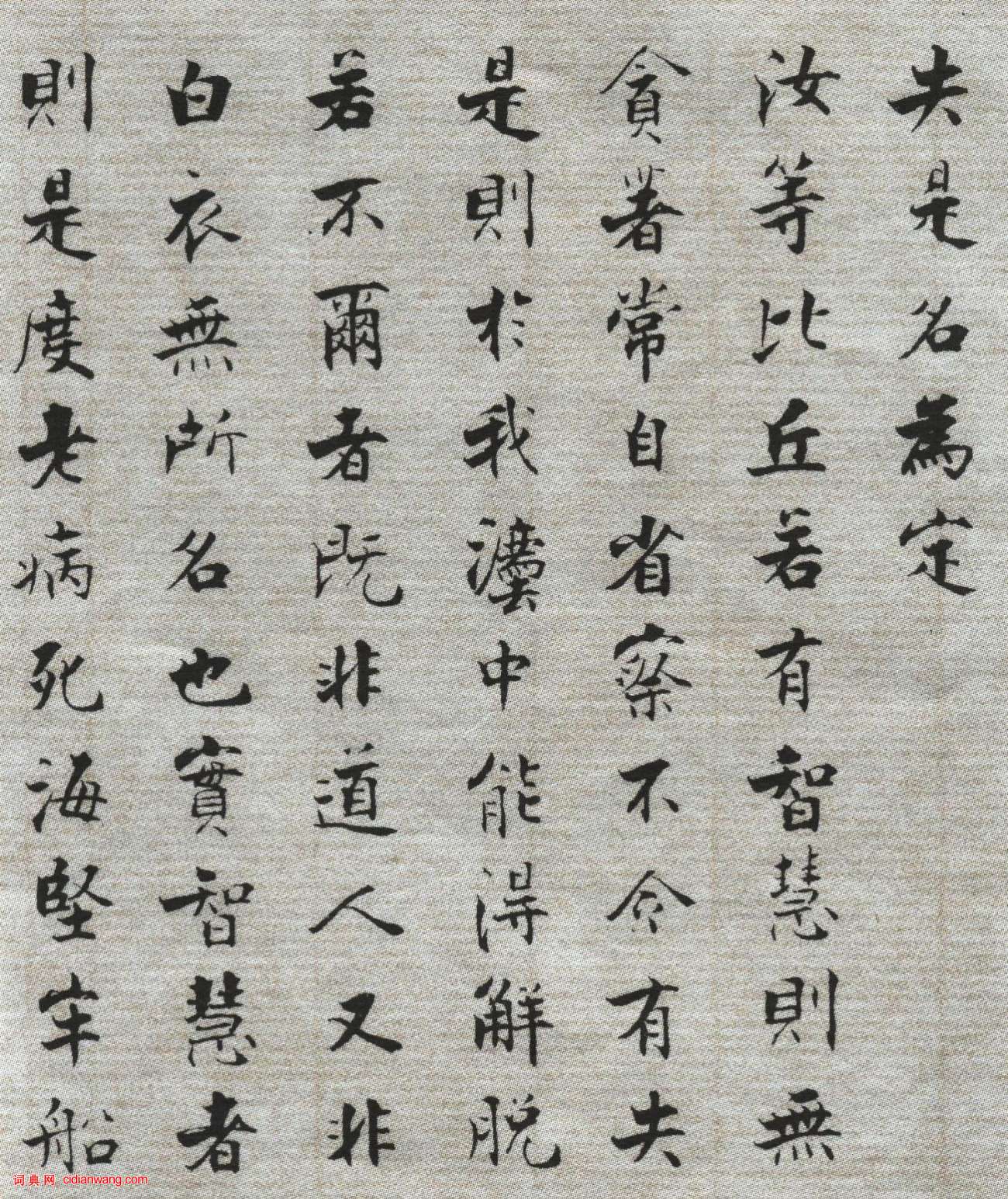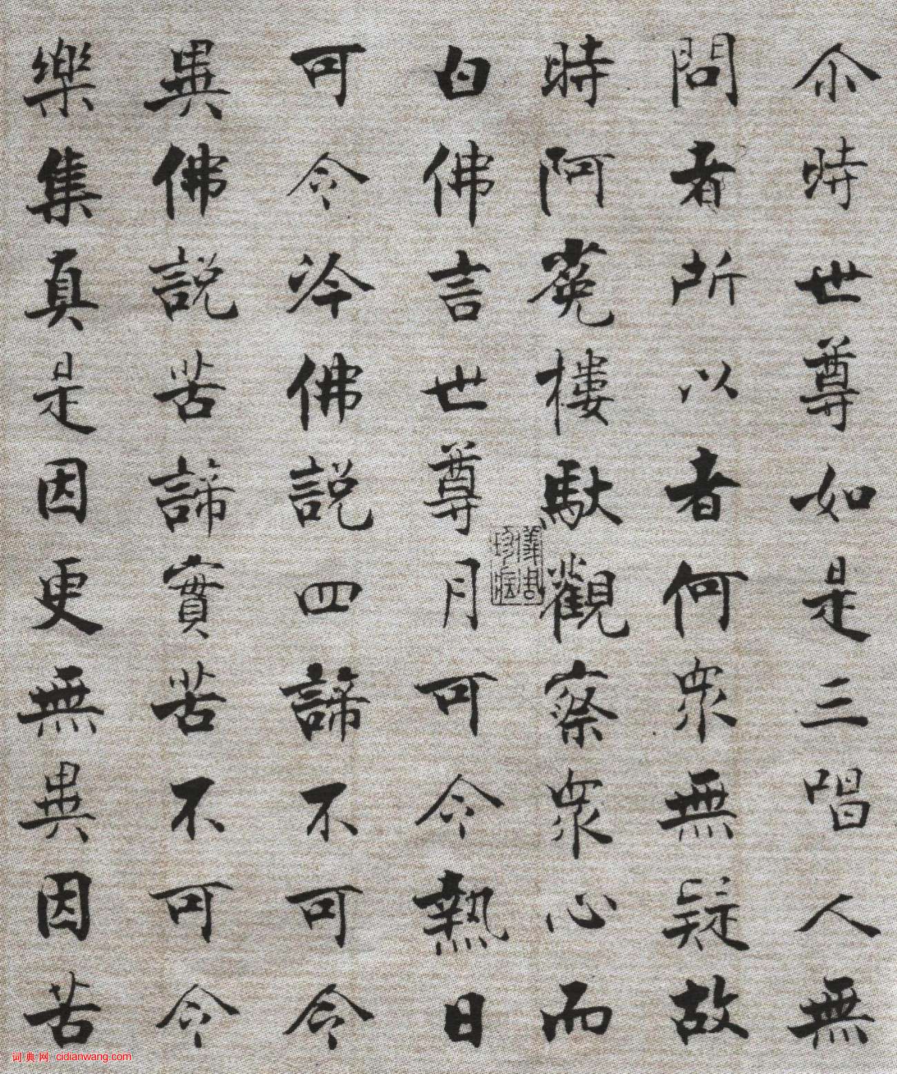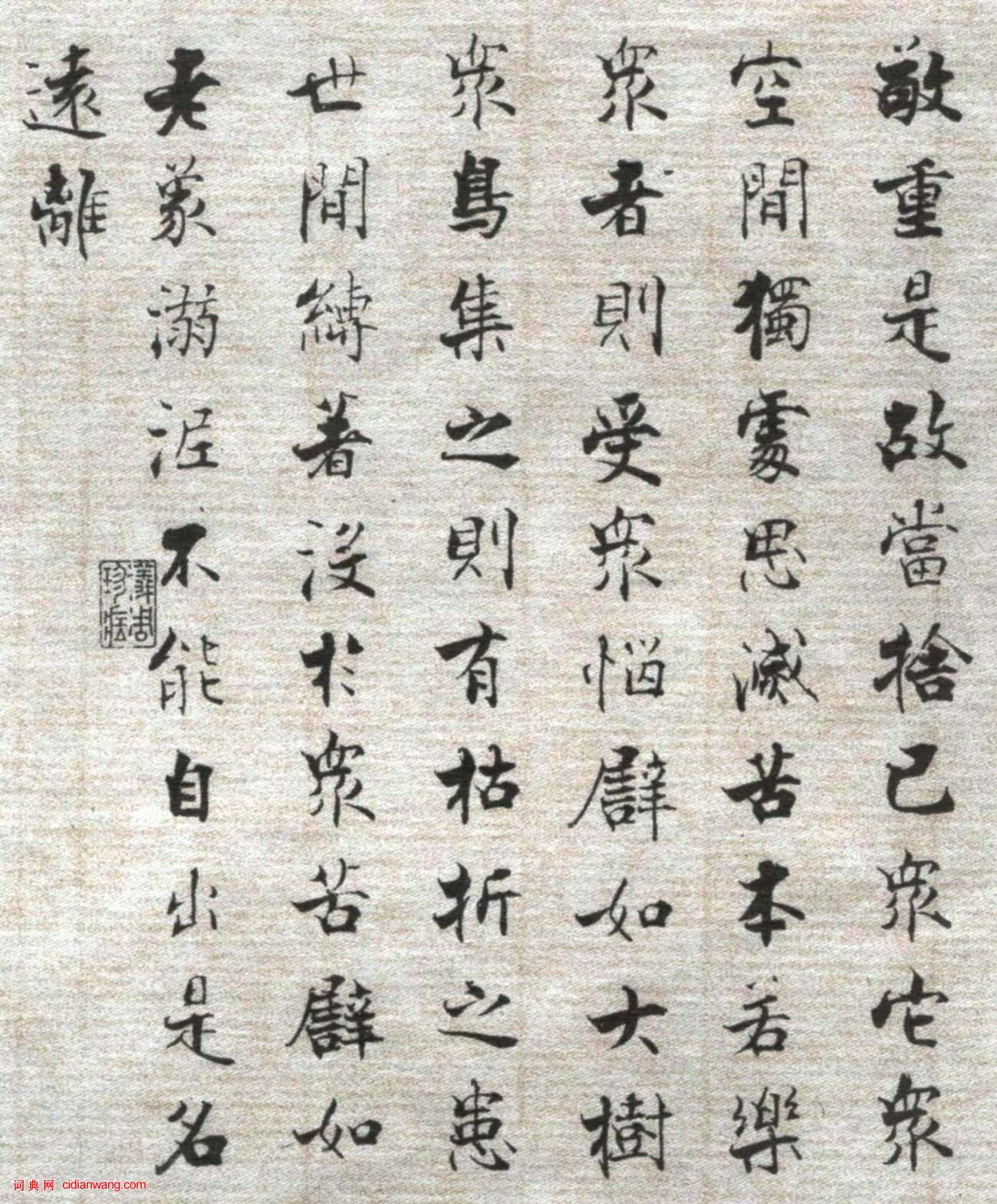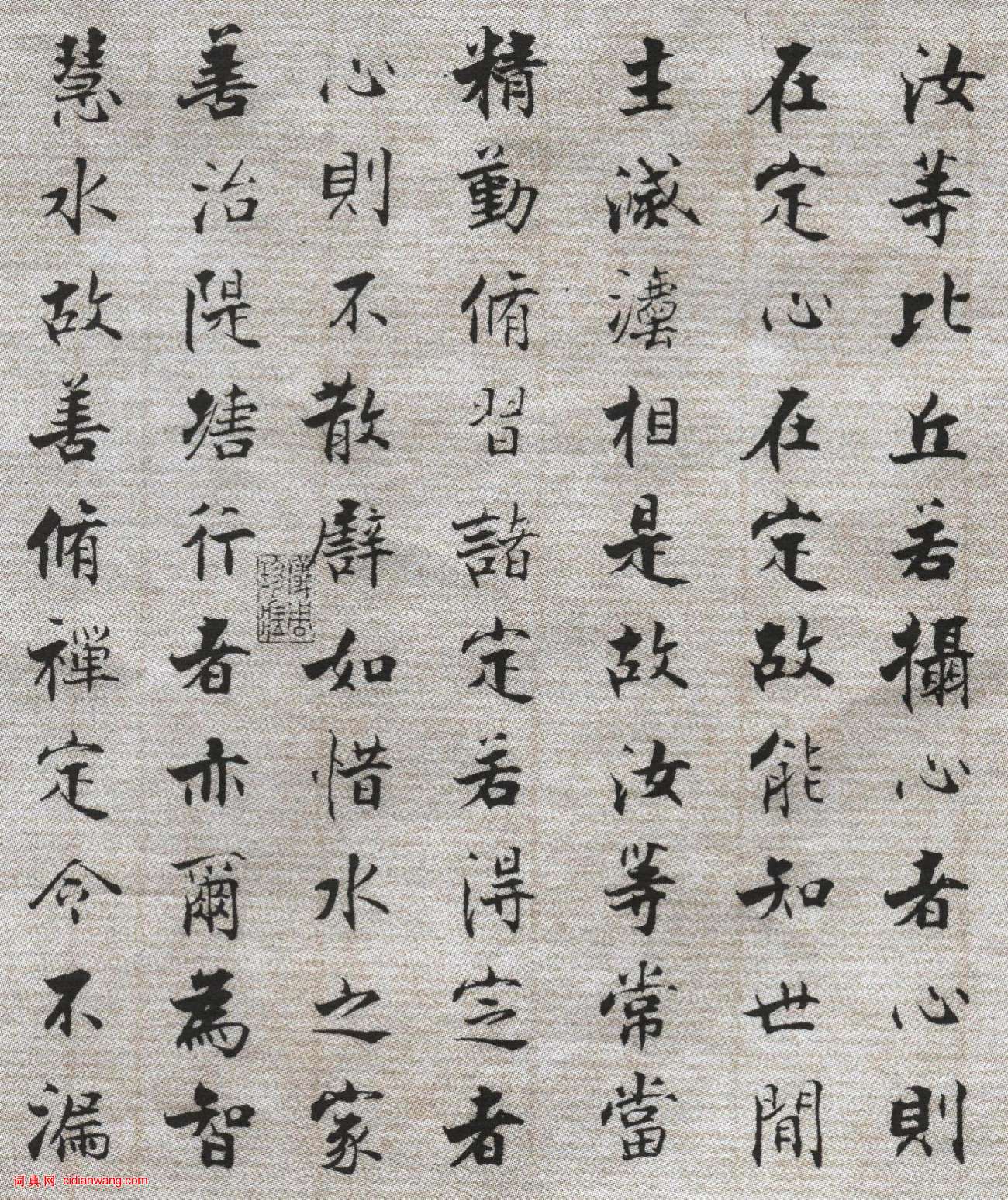 《佛遺教經》為釋迦牟尼涅槃前最後一次說法的記錄,姚秦三藏法師鳩摩羅什漢譯,是佛教重要經典。署款“張即之七十歲寫,寶祐三年夏至日”,是張氏晚年寫經精品之一。楷書取法唐人,個人風格鮮明。結字緊峭,用筆靈動而有呼應顧盼之勢,人稱“以行作楷”。原為經折裝,後改為長卷。卷內有清高宗弘曆引首、卷尾題識;鈐有清安岐、乾隆內府、袁勵準諸鑑藏印章。
