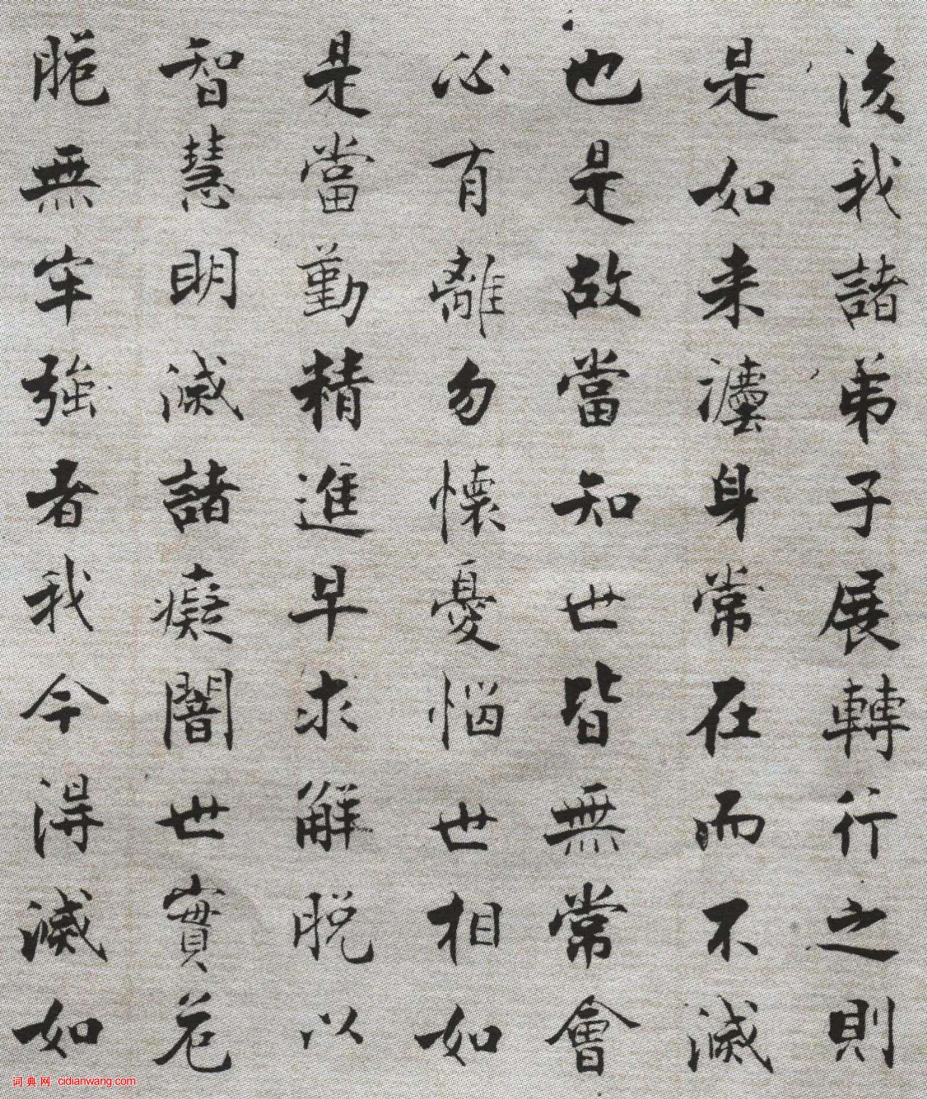 張即之《佛遺教經》,紙本行書。縱28厘米、橫867.9厘米。從北宋開始,禪宗初學者入門必讀“佛祖三經”,所謂“佛祖三經”指的是《四十二章經》、《佛遺教經》和《溈山警策》。此帖《佛遺教經》是張即之70歲時書,即南宋寶佑三年(公元1255年),現藏北京故宮博物院。