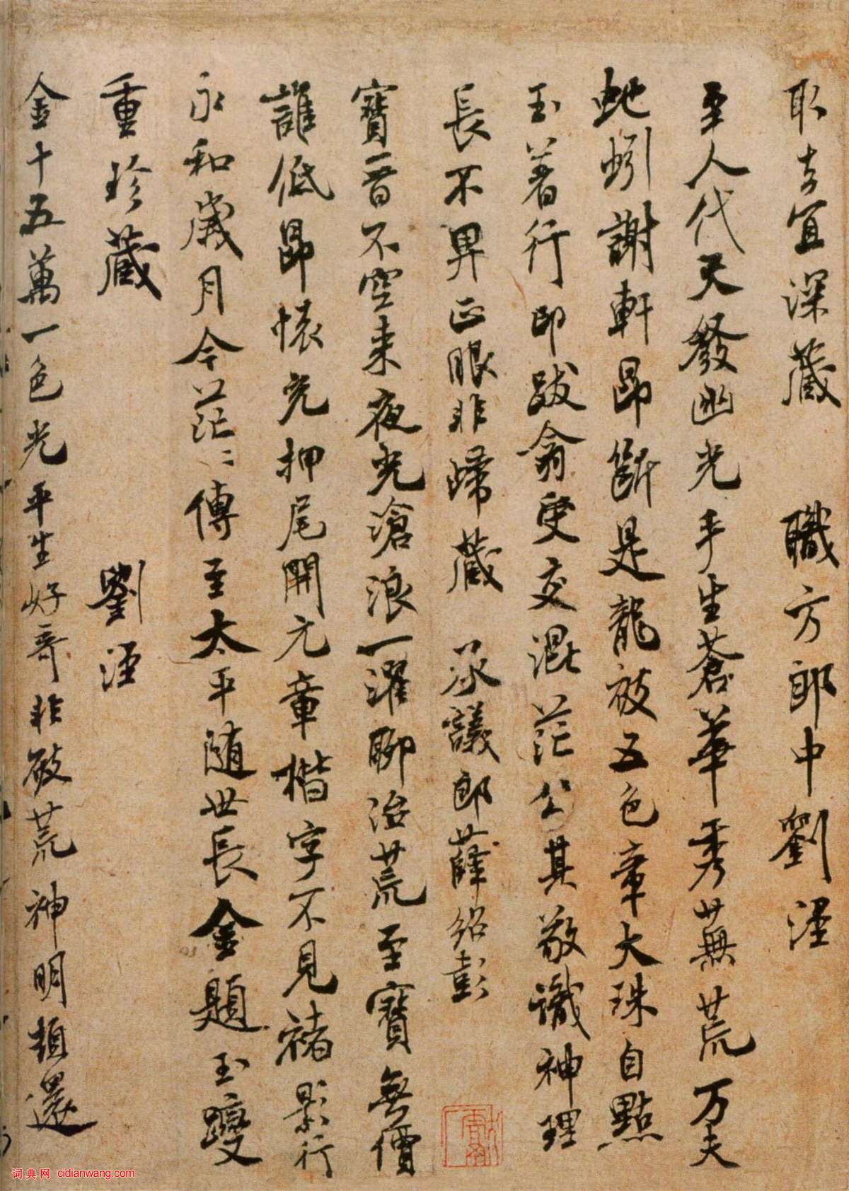 書法欣賞魏晉書法唐朝書法宋朝書法元朝書法明朝書法清朝書法近現代書法字典網>> 歷代書法>> 宋朝>> 米芾行楷《王略帖贊》(2)正文 米芾行楷《王略帖贊》(2)作者:米芾 書體:行楷 首 頁 上一頁 1 2 3 下一頁 尾 頁米芾的相關書法作品:米芾·戲成詩帖 米芾《賀鑄帖》 米芾行書《方圓庵記》 米芾《惡札帖》 米芾《晉紙帖》 米芾·蘇太簡參政帖 米芾·行書三札卷 米芾·褚臨黃絹本蘭亭序跋贊 米芾·糧院帖 相關文章:陳鵬年《行書虎丘詩軸》 (行書)陳鵬年《行書虎丘詩軸》縱121.2厘米 橫50.2厘米 中國國家博物館藏釋 文:...朱耷《草書七絕詩軸》 (草書)朱耷《草書七絕詩軸》紙本草書 151.5×41cm 北京市文物商店藏釋文:鈞天...文徵明行草《胡笳十八拍》 (行草)文徵明行草作品欣賞《胡笳十八拍》,《胡笳十八拍》是唐代劉商創作的一首古琴曲法,文...龍門二十品之太妃侯造像題記 (楷書)龍門二十品之《太妃侯造像題記》,全稱《廣川王祖母太妃侯造像題記》。景明四(503...黃自元楷書《朱柏廬先生治家格言》 (楷書)黃自元(1837--1918),字敬輿,號澹叟,湖南安化縣龍塘鄉人,清末書法家,...賀知章《草書孝經》 (草書)賀知章《草書孝經》縱26.0厘米橫265.1厘米日本宮內廳三之丸尚藏館本卷以草書...鄭燮《行書祝允明詩軸》 (行書)鄭燮《行書祝允明詩軸》紙本行書 86.1×49.6cm 北京故宮博物院藏 釋文...洪亮吉《金文分箎量蘊八言聯》 (篆書)洪亮吉《金文分箎量蘊八言聯》紙本篆書 121.2×23.5cm×2 浙江省博...王羲之行書《奄至帖》 (行書)王羲之行書《奄至帖》(材官本、澄清堂本、淳化閣帖) 《奄至帖》,5行,36字。行...李宗諤·送士龍詩 (楷書)李宗諤《送士龍詩》,楷書,台北故宮博物院藏。宗諤工隸書,為西崑體詩人之一。著有文...