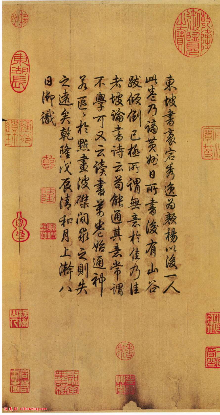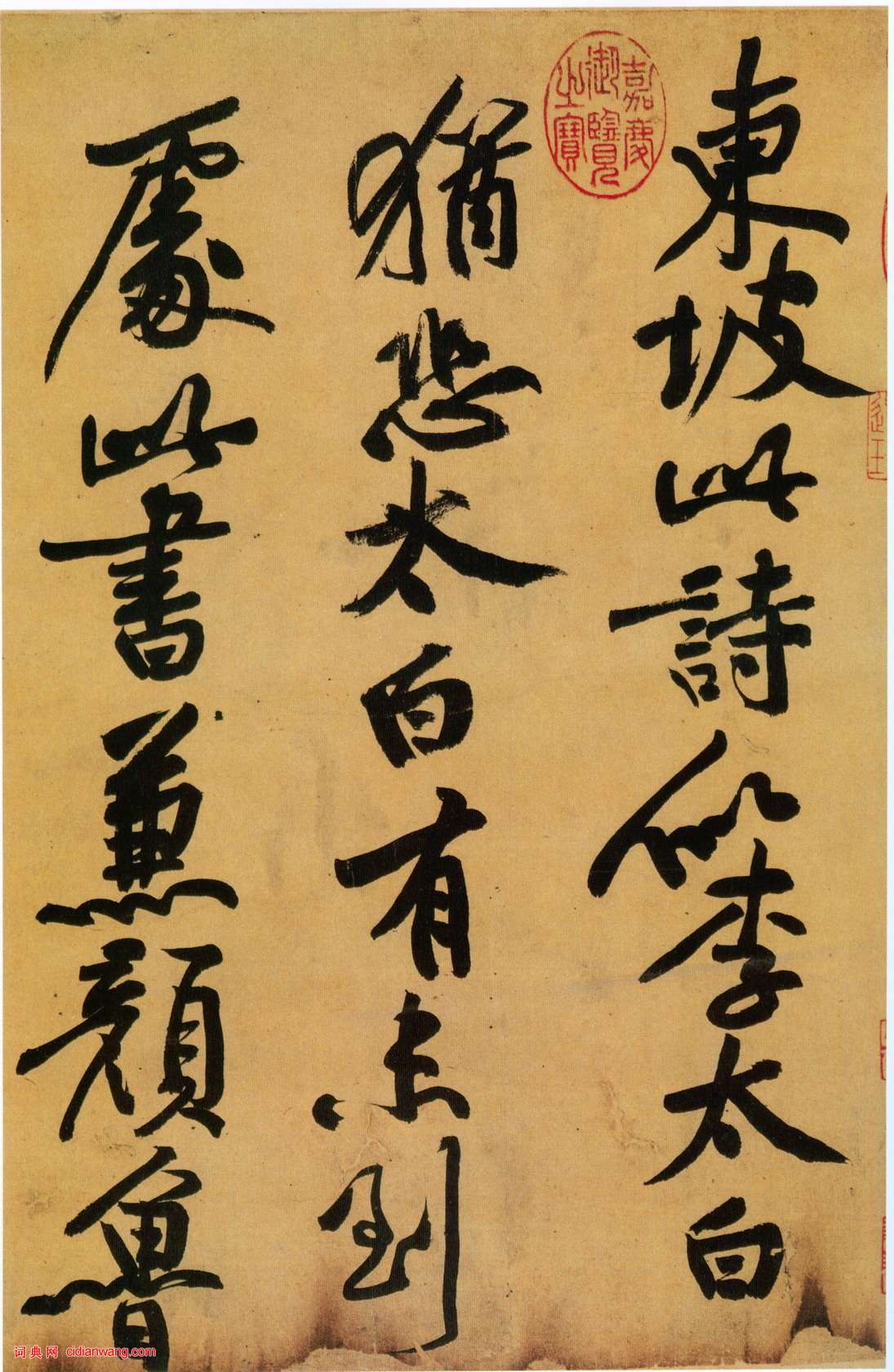 資源下載魏晉書法唐朝書法宋朝書法元朝書法明朝書法清朝書法近現代書法字典網>> 歷代書法>> 宋朝>> 蘇軾行書《黃州寒食詩帖》(5)正文 蘇軾行書《黃州寒食詩帖》(5)作者:蘇軾 書體:行書 首 頁 上一頁 1 2 3 4 5 6 7 8 9 10 下一頁 尾 頁蘇軾的相關書法作品:蘇軾行書《近人帖》 蘇軾楷書《醉翁亭記》 蘇軾行書《次韻三舍人省上詩帖》 蘇軾·洞庭春色賦中山松醪賦合卷 蘇軾小楷《金剛經》 蘇軾楷書《豐樂亭記》 蘇軾《人來得書帖》 蘇軾行書《書林逋詩後》 蘇軾《天際烏雲帖》 相關文章:祝允明行草《自作詩四首》 (行草)祝允明擅詩文,尤工書法,名動海內。他與唐寅、文徵明、徐禎卿並稱“吳中四才子”。又...范仲淹《師魯帖》 (行楷)【釋文】仲淹頓首:李寺丞行,曾□□□□遞中,亦領來教承動止休勝。仲淹此中無□□,...東漢隸書集聯《魯峻碑集聯》 (隸書)漢刻隸書集聯欣賞《魯峻碑集聯》,清代俞樾撰句。黃道周行書《贈眉仲戴蓬萊即事詩軸》 (行書)黃道周《贈眉仲戴蓬萊即事詩軸》絹本行書 192.5×49.5cm 崇禎十七年(...王庭筠·題《幽竹枯槎圖》卷 (行書)【釋文】黃華山真隱,一行涉世,便覺俗狀可憎,時拈禿筆作幽竹枯槎,以自料理耳。王庭...解縉《草書詩帖》冊 (草書)解縉《草書詩帖》冊 紙本 十七開半 每開30.7×22.6cm 北京故宮博...黃庭堅行書《致景道十七使君詩》 (行書)黃庭堅《致景道十七使君詩》紙本行書 26.7×28.8cm 台北故宮博物院藏釋...米芾《行書間架結構92法》米芾作書十分認真,不像某些人想像的那樣,不假思索一揮而就。米芾自己說:“余寫《海...文徵明89歲所臨《蘭亭序》 (行書)文徵明畫像文徵明是明代中後期最著名的書法家、畫家。書法上與祝允明、王寵並譽為“吳...胡問遂臨《張黑女墓誌》 (楷書)張黑女墓誌 全稱《魏故南陽太守張玄墓誌》,北魏普泰元年(公元531年)刻,為魏墓...