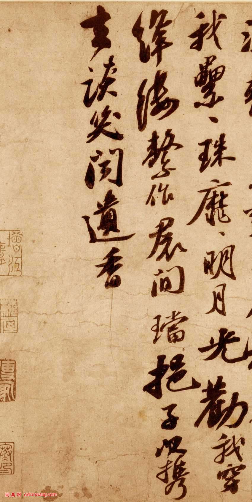 書法欣賞魏晉書法唐朝書法宋朝書法元朝書法明朝書法清朝書法近現代書法字典網>> 歷代書法>> 宋朝>> 蘇軾行書《李白仙詩卷》(2)正文 蘇軾行書《李白仙詩卷》(2)作者:蘇軾 書體:行書 首 頁 上一頁 1 2 3 4 下一頁 尾 頁蘇軾的相關書法作品:蘇軾行書《前赤壁賦》 蘇軾《治平帖》 蘇軾行書《禱雨帖》 蘇軾《歸安丘園帖》 蘇軾行書《答謝民師論文帖卷》 蘇軾楷書《宸奎閣碑》 蘇軾行書《東武帖》 蘇軾行書《寶月帖》 蘇軾行書《屏事帖》 相關文章:米友仁·題《遠岫晴雲圖》 (行書)【釋文】紹興甲寅,元夕前一日,自新昌泛舟,來赴朝參,居臨安七寶山,戲作小卷付與稟...憨山·永嘉真覺大師證道歌 (行書)憨山《永嘉真覺大師證道歌》,此本內容為性理修養之說,涉佛教。寫法上本於王字,不少...康里巎巎《草書張旭筆法卷》 (草書)康里巎巎《草書張旭筆法卷》 紙本 35.8×329.6cm 至順四年(1333...鄺露《行書謁文選樓詩扇》 (行書)鄺露《行書謁文選樓詩扇》金箋行書 16.3×49cm 上海博物館藏 釋文: 款...褚遂良摹《王羲之小楷樂毅論》 (小楷)貞觀十二年(638),李世民視同師長的大書法家虞世南逝世,這使李世民感到特別的傷...張弼草書《題詹耳載酒堂草書立軸》 (草書)張弼《題詹耳載酒堂草書立軸》紙本草書 146×31cm 台灣何創時書法藝術基金...孫岳頒《行草書詩軸》 (行草)孫岳頒《行草書詩軸》紙本行草書 128.5×55cm 無錫市博物館藏 釋文:獨...傅山《草書詩軸》 (草書)傅山《草書詩軸》 187.8×51.4cm 蘇州博物館藏釋文:儒仙難易葛翁籌,...吳寬行書《跋朱熹“城南倡和詩卷”》 (行書)吳寬《跋朱熹“城南倡和詩卷”》紙本行書 縱31.5cm 北京故宮博物院藏 ...趙秉文《趙霖昭陵六駿圖題跋》 (行書)【釋文】雒陽趙霖所畫天閑六馬圖觀其筆法圓熟清勁度越儔侶向時曾於梵林精舍覽一賣家寶...