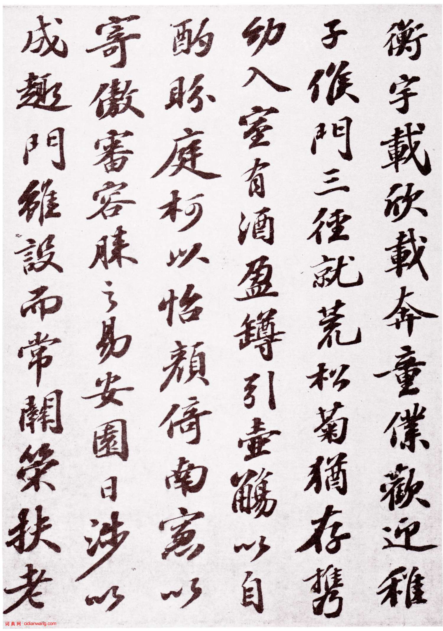資源下載魏晉書法唐朝書法宋朝書法元朝書法明朝書法清朝書法近現代書法字典網>> 歷代書法>> 宋朝>> 蘇軾行書《歸去來兮辭》卷(3)正文 蘇軾行書《歸去來兮辭》卷(3)作者:蘇軾 書體:行書 首 頁 上一頁 1 2 3 4 下一頁 尾 頁蘇軾的相關書法作品:蘇軾·羅池廟碑 蘇軾行書《前赤壁賦》 蘇軾小楷《般若波羅密多心經》 蘇軾楷書《司馬溫公神道碑》 蘇軾行書《近人帖》 蘇軾·洞庭春色賦中山松醪賦合卷 蘇軾行書《次韻前篇》 蘇東坡《寒食帖》賞析 蘇軾行書《滿庭芳詞》 相關文章:王羲之行書結構92法王羲之行書結構92法,總結了關鍵點,把握的一定規律,細心觀摩思考一下,或許有所得...張旭草書《十五日帖》 (草書)《十五日帖》 傳為張芝之作,或是唐代書法家張旭的作品,是一帖難得的草書墨跡。15種行書基本筆法,你會幾種?行書是在楷書基礎上發展演變出來的字型,因此在筆法上與楷書大體相同,只是起收、提按...王寵草書《自書五憶歌》 (草書)王寵《自書五憶歌》 紙本 草書 29.3×294.7厘米。台北故宮博物院藏。 ...吳熙載《草書花底燈前七言聯》 (草書)吳熙載《草書花底燈前七言聯》 136×28cm×2 西泠印社藏釋文:花底振衣...張即之行草《莊幹帖》 (行草)張即之《莊幹帖》(即《溪莊帖》)紙本行草書 27×23.6cm 釋文:即之少意...歐體九成宮標準習字帖 (不詳)臨摹碑帖注意事項(溥慶)1.習字要有計畫,尤須持之以恆。每天須有一定時間學習。臨...顏真卿行書《讓憲部尚書表》 (行書)《顏真卿三表帖》作於至德二載(公元757年)四月。其中《讓憲部尚書表》為唐肅宗授...王鐸·跋米芾《行書三札卷》 (行書)王鐸跋米芾《行書三札卷》,故宮博物院藏,為王鐸關於觀賞此卷與友人的通信一封。郭天錫小楷《王獻之保母帖跋》 (小楷)郭天錫字佑之,號北山,曾為御史,今山西大同(雲中)人或作天水人,僑寓杭州,做居於...