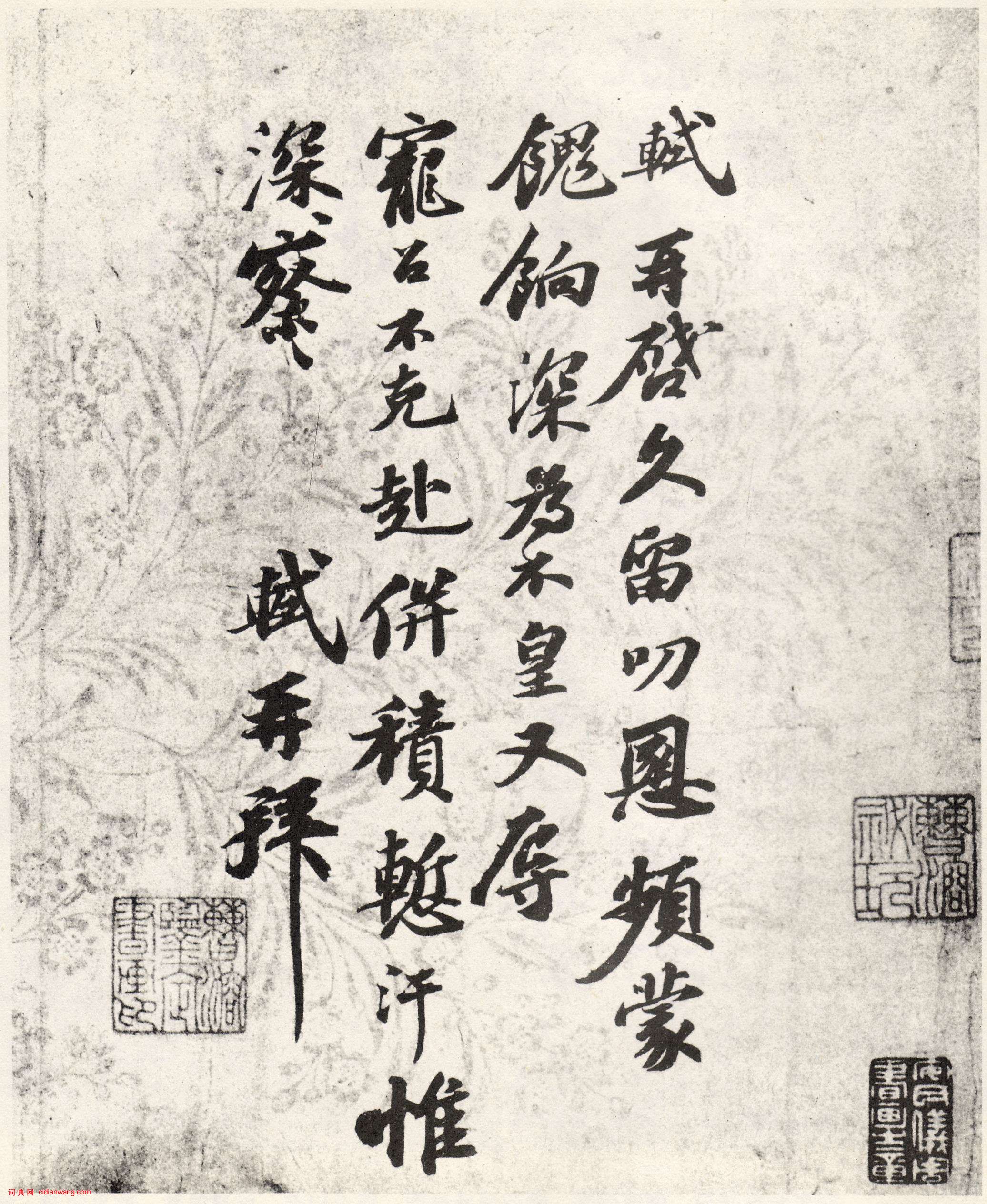 書法欣賞魏晉書法唐朝書法宋朝書法元朝書法明朝書法清朝書法近現代書法字典網>> 歷代書法>> 宋朝>> 蘇軾行書《久留帖》正文 蘇軾行書《久留帖》作者:蘇軾 書體:行書 東坡居士蘇軾行書信札《久留帖》紙本,25.1厘米×23.1厘米。書於1085年(元豐八年),台北故宮博物院藏。釋文:軾再啟。久留叼恩,頻蒙饋餉,深為不皇。又辱寵召,不克赴。並積慚汗,惟深察、深察。軾再拜。蘇軾的相關書法作品:蘇軾楷書《醉翁亭記》 蘇軾行書《寶月帖》 蘇軾行書《東武帖》 蘇軾楷書《宸奎閣碑》 蘇軾·羅池廟碑 蘇軾行書《黃州寒食詩帖》 蘇軾《天際烏雲帖》 蘇軾楷書《司馬溫公神道碑》 蘇軾行書《陽羨帖》 相關文章:狂草大家陳淳書法小品欣賞 (草書)陳淳,名淳,字道復,後以字行,別字復甫,自號白陽山人。長洲人。陳淳自幼飽學,對於...張照行書《御製賦得春色滿皇州詩軸》 (行書)張照《御製賦得春色滿皇州詩軸》紙本行書 340×133.5cm 台北故宮博物院...楷書源頭到底是什麼?楷書又稱“真書”、“正書”,產生於漢末,盛行於魏晉南北朝,隋唐達到極致。楷書在歷...湯貽汾《行書詩軸》 (行書)湯貽汾《行書詩軸》紙本行書 54.1×20.8cm 上海博物館 藏釋文:每睹翩...瞧!這才是古法造紙【導讀】手造的楮皮紙,不及機械紙平滑光潔,但筆觸墨染與這些草屑雜質相遇處,便有了...伊秉綬隸書《毋自欺齋橫額》 (隸書)伊秉綬《隸書“毋自欺齋”橫額》紙本水墨 45.5×193cm 1815年 深圳...趙之謙《楷書廣成頌軸》 (楷書)趙之謙《楷書廣成頌軸》紙本楷書 158×41cm 西泠印社藏 釋文:司徒勒卒,...東漢隸書《景君銘》碑陰 (隸書)此碑全稱《漢益州太守北海相景君銘》,又名《北海相景君碑》。漢漢安二年(143)立...全國第一屆書法篆刻展覽-篆刻作品1980年5月,全國第一屆書法篆刻展覽(國展)在瀋陽展出,現與大家分享由人民美術...王昶·跋《司馬景和妻孟敬訓墓志銘》 (楷書)王昶跋《司馬景和妻孟敬訓墓志銘》,楷書。
