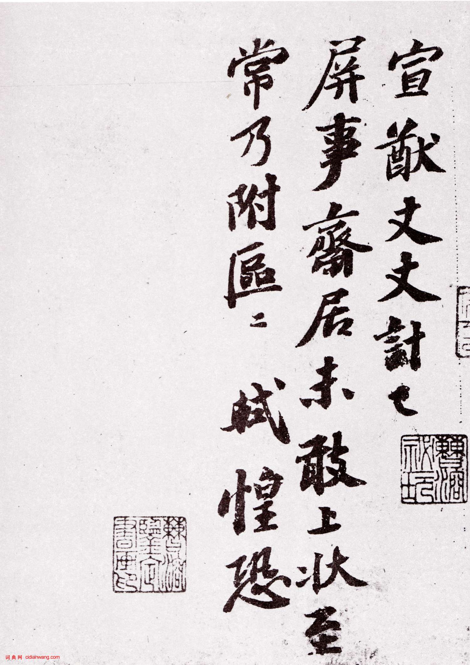 書法欣賞魏晉書法唐朝書法宋朝書法元朝書法明朝書法清朝書法近現代書法字典網>> 歷代書法>> 宋朝>> 蘇軾行書《屏事帖》正文 蘇軾行書《屏事帖》作者:蘇軾 書體:行書 蘇軾《屏事帖》 書於1085年(元豐八年) 釋文:宣猷丈丈計已屏事齋居 未敢上狀 至常乃附區區 軾惶恐蘇軾的相關書法作品:蘇軾行書《北游帖》 蘇軾行書《陽羨帖》 蘇軾行書《江上帖》 蘇軾行書《獲見帖 》《致長官董侯尺牘》 蘇軾行書《書林逋詩後》 蘇軾行書《王晉卿帖》 蘇軾《寒食帖》,蘇軾黃州寒食帖 蘇軾行書《致季常尺牘》 蘇軾行楷《祭黃幾道文卷》 相關文章:蘇轍《見訪帖》 (行書)蘇轍《見訪帖》,1089年(元祐四年),行書,25.2×24.2cm。台北故宮...趙孟頫行書《致季博札》 (行書)趙孟頫 《致季博札》紙本,縱27.7cm,橫49.4cm。美國普林斯頓大學美術館...趙之琛隸書《萬事一生六言聯》 (隸書)趙之琛《隸書“萬事一生”六言聯》紙本隸書 117.9×18.3cm×2 上海...包世臣行書《錄坡公語立軸》 (行書)包世臣《錄坡公語立軸》紙本行書 135.2×38.5cm 北京故宮博物院藏【資...古人的練書法教程初學不外臨摹。臨書得其筆意,摹書得其間架。臨摹既久,則莫如多看,多悟,多商量,多...田英章《大楷九成宮醴泉銘》 (楷書)《九成宮醴泉銘》(簡稱《醴泉銘》、《九成宮》、《九成宮碑》),是唐初的一座名碑,...學小楷需理解這幾點小楷技巧1、小楷總體屬帖學。如能參以漢魏筆意體勢及敦煌寫經之率意,會增加蘊藉雋永之筆致。...米芾《紫金研帖》 (行書)【釋文】蘇子瞻攜吾紫金研去。囑其子入棺。吾今得之。不以斂。傳世之物。豈可與清淨圓...傅山《行草臨帖書冊》 (行草)傅山 《行草臨帖書冊》冊 紙本 32cm×32cm×2×8 山西省博...徐無聞草書題《偃竹圖》 (草書)徐無聞《偃竹圖》 73×37cm 1987年 私人收藏款署:文與可作偃竹極夭矯...