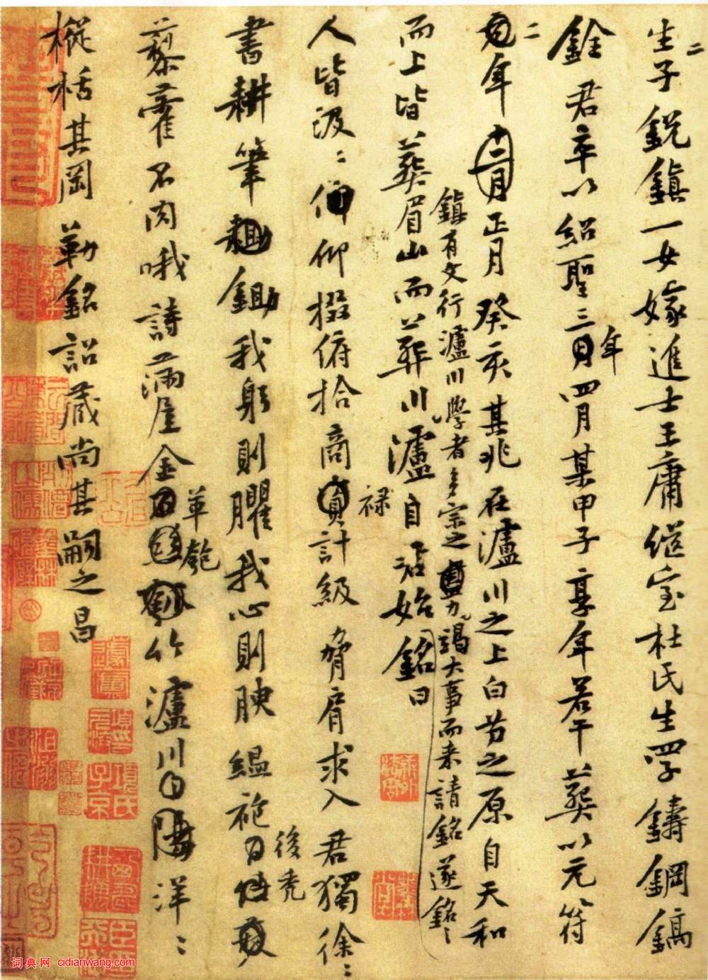 資源下載魏晉書法唐朝書法宋朝書法元朝書法明朝書法清朝書法近現代書法字典網>> 歷代書法>> 宋朝>> 黃庭堅行書《王史二氏墓志銘稿卷》(3)正文 黃庭堅行書《王史二氏墓志銘稿卷》(3)作者:黃庭堅 書體:行書 首 頁 上一頁 1 2 3黃庭堅的相關書法作品:黃庭堅小楷《金剛般若波羅蜜經》 黃庭堅行楷《砥柱銘卷》 黃庭堅行書《酺池寺詩》 黃庭堅大字楷書《牛口莊題名卷》 黃庭堅行書《經伏波神祠》 黃庭堅行書《題王詵詩帖》 溫革行書《跋黃庭堅緻景道十七使君尺牘》 黃庭堅行書《致天民知命大主薄書》 黃庭堅·惟清道人帖 相關文章:沈尹默行書《歐陽修詩話單片》 (行書)沈尹默《歐陽修詩話單片》紙本行書【資料來源】《海派代表書家系列作品集——沈尹默》...趙孟頫行書《望江南淨土詞十二首》 (行書)此卷白雲法師所撰《望江南淨土詞十二首》趙孟頫書於元至大二年(公元1309年)秋七...金農隸書《華山碑文》節選 (隸書)金農《華山碑文》節選,隸書軸 年代不詳 紙本 縱141厘米 橫53.5厘米 福建...蘇軾行書《致季常尺牘》 (行書)蘇軾《致季常尺牘》,又名《一夜帖》,行書,30.3 X 48.6cm 台北故宮博...邊壽民書法欣賞 (行書)清朝有位畫家以擅畫蘆雁出名,他的畫作曾被雍正皇帝所收藏。他終生隱居、窮困潦倒、卻...倪瓚行楷《與袁寓齋書畫卷》 (行楷)倪瓚《與袁寓齋書畫卷》紙本 1362 縱29厘米 橫59.5厘米 崑崙堂珍藏柳公權楷書《陸士衡演連珠》 (楷書)柳公權楷書《陸士衡演連珠》拓片,相傳《陸士衡演連珠》只比玄秘塔早寫了六個月。此時...張即之楷書《雙松圖歌卷》 (楷書)張即之《雙松圖歌卷》紙本楷書 33.8×1196cm 寶祐五年(1257)...張芝草書《二月八日帖》 (草書)《二月八日帖》 傳為張芝之作,或為唐張旭所作 選自《大觀帖》(故宮博物院藏李宗翰...顏真卿小楷《麻姑仙壇記》 (小楷)顏真卿楷書書法《麻姑仙壇記》全稱《有唐撫州南城縣麻姑山仙壇記》,有大、中、小字三...