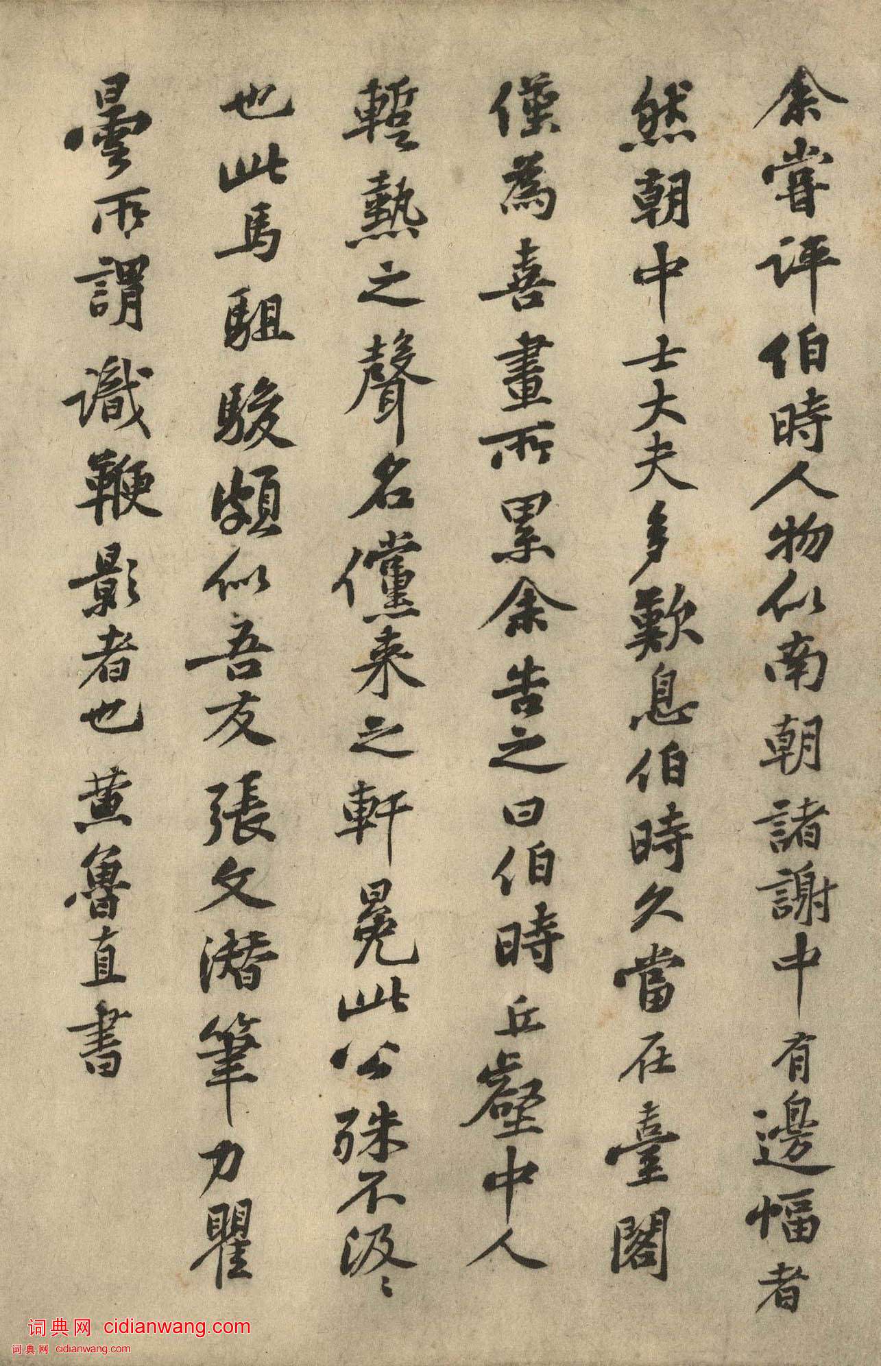 釋文: 余嘗評伯時人物似南朝諸謝中有邊幅者,然中朝士大夫多嘆息伯時當在台閣,僅為善畫所累。余告之曰:‘伯時丘壑中人,暫熱之聲名,儻來之軒冕,殊不汲汲也。殊不汲汲也。此馬駔駿,頗似吾友張文潛筆力,瞿曇所為識鞭影者也。黃魯直書。