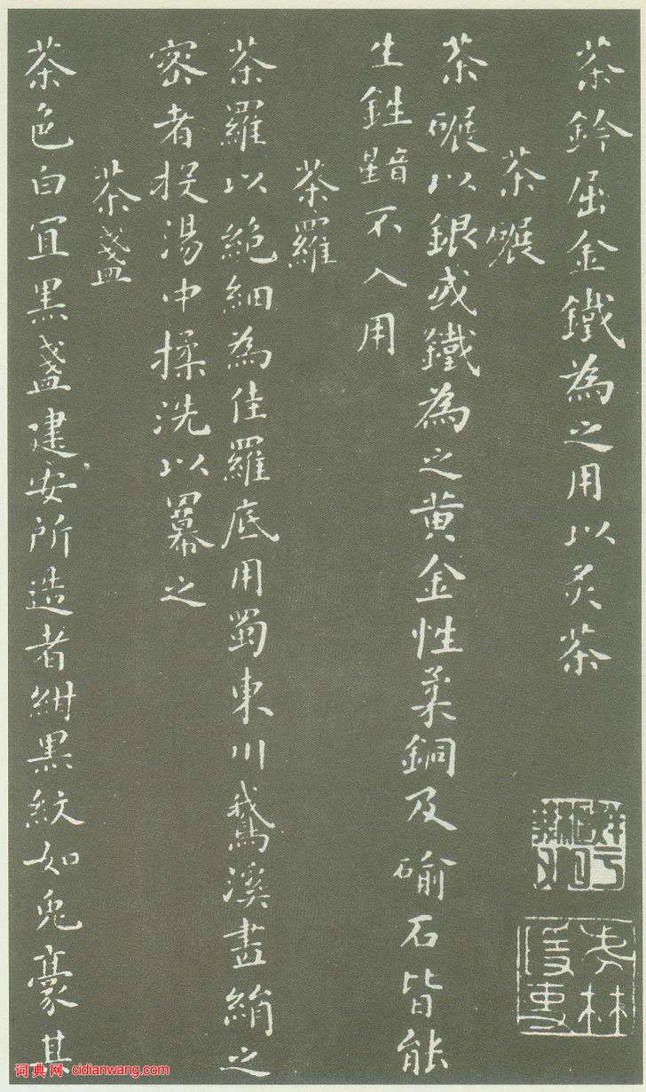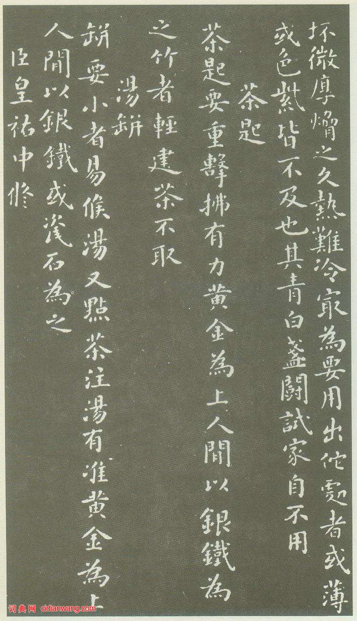 資源下載魏晉書法唐朝書法宋朝書法元朝書法明朝書法清朝書法近現代書法字典網>> 歷代書法>> 宋朝>> 蔡襄小楷《茶錄》(5)正文 蔡襄小楷《茶錄》(5)作者:蔡襄 書體:小楷 首 頁 上一頁 1 2 3 4 5 6 下一頁 尾 頁 全文蔡襄的相關書法作品:蔡襄《自書詩卷》 蔡襄·門屏帖 蔡襄《安道帖》 蔡襄《陶生帖》 蔡襄《離都帖》 蔡襄·彥猷侍讀帖 蔡襄楷書《謝賜御書詩表》 蔡襄《京居帖》 蔡襄草書《貧賢帖》 相關文章:王羲之草書《漢時帖》 (草書)《漢時帖》前二行為唐人寫本,後段為元趙孟頫補書。按《漢時帖》為王羲之《十七帖》中...蒲華行書《節錄畫禪室隨筆句軸》 (行書)蒲華《節錄畫禪室隨筆句軸》紙本行書 146.5×36.1cm 上海博物館藏釋文...文徵明狂草詩卷 (草書)草書詩卷 紙本 縱26公分 橫487公分 上海博物館藏 文徵明狂草,世不多見。這...9副齊白石書法作品欣賞齊白石是舉世公認的藝術大師,他的詩、書、畫、印都是具有很高的造詣。他自評藝術成就...釋擔當《行草書四言詩軸》 (行草)《行草書四言詩軸》 紙本 135.2X31.3cm 南京博物院藏 ...魯迅《錄李賀綠章封事句橫幅》 (行書)魯迅《錄李賀綠章封事句橫幅》 20.7×113cm 1936年 上海魯迅紀念館...王羲之《都下帖》 (草書)《都下帖》,傳王羲之書,麻紙摹本,縱27.7厘米。現藏台北故宮博物院。五行半,四...徐渭《行草立軸》 (行草)徐渭 行草立軸 紙本 123×35cm來自中國嘉德2005四季第2期拍賣會 ...翁同文楷書對聯 (楷書)釋文:東壁圖書西園翰墨,南華秋水北苑春山。煦士先生笑正 香洲翁同文翁同文(19...全國第一屆書法篆刻展作品集-楷書部分1980年5月,全國第一屆書法篆刻展覽(國展)在瀋陽展出,現與大家分享由人民美術...