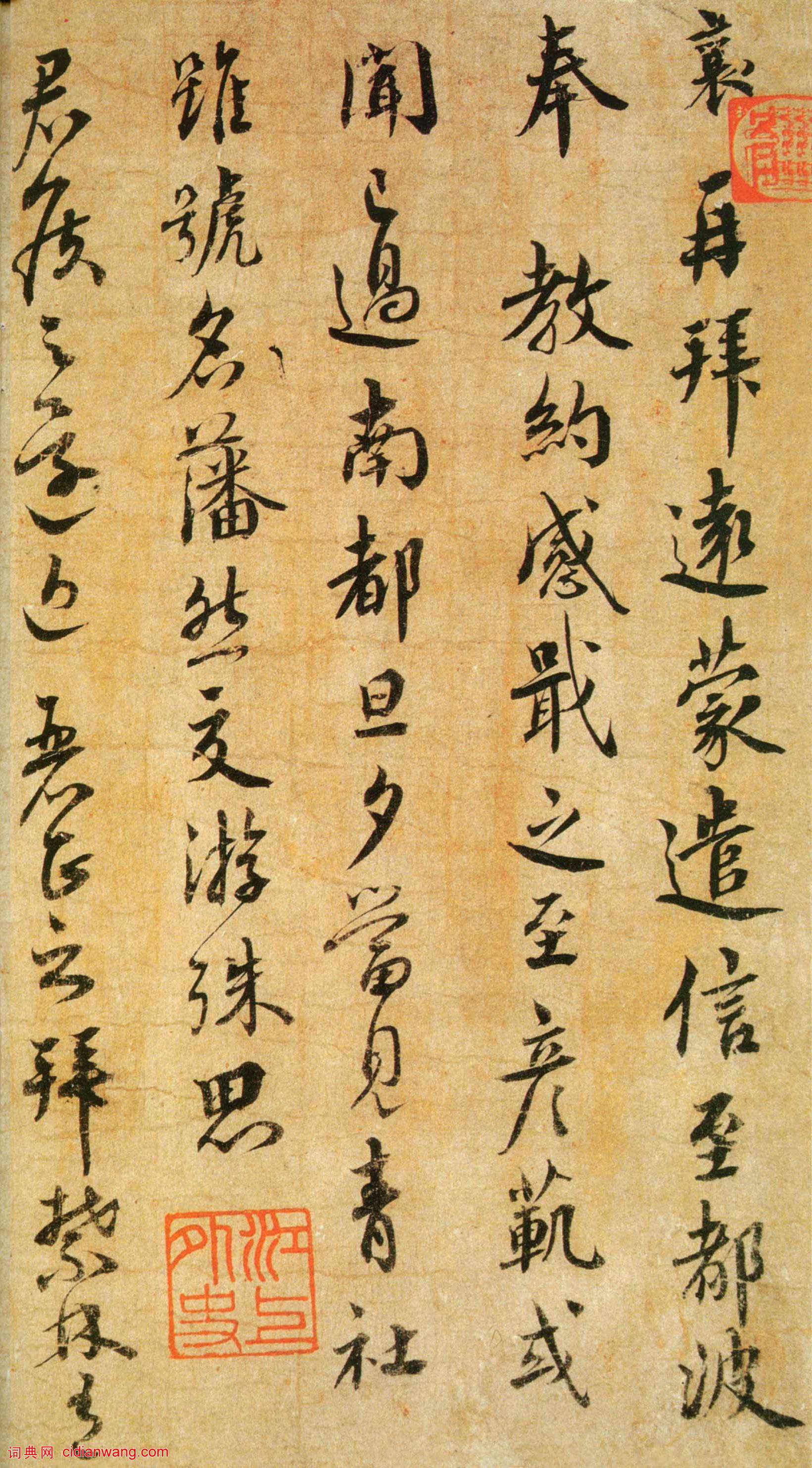 資源下載魏晉書法唐朝書法宋朝書法元朝書法明朝書法清朝書法近現代書法字典網>> 歷代書法>> 宋朝>> 蔡襄行書《遠蒙帖》(2)正文 蔡襄行書《遠蒙帖》(2)作者:蔡襄 書體:隸書 首 頁 上一頁 1 2 全文蔡襄的相關書法作品:蔡襄草書《貧賢帖》 蔡襄《扈從帖》 蔡襄·謝郎帖 蔡襄《扈從帖》 蔡襄的書法大全 蔡襄《離都帖》 蔡襄《安道帖》 蔡襄草書《思詠帖》 蔡襄《蒙惠帖》 相關文章:歐陽詢《夢奠帖》 (行書)【釋文】仲尼夢奠,七十有二。周王九齡,具不滿百。彭祖資以導養,樊重任性,裁過盈數...解密褚遂良《大字陰符經》筆法|《大字陰符經》墨跡本局部《大字陰符經》墨跡本,96行,461字,傳唐代褚遂良書...東漢隸書《楊淮表記》 (隸書)東漢《楊淮表記》,全稱《司隸校尉楊淮表記》,東漢隸書摩崖石刻,熹平二年刻於褒科道...趙佶楷書《題錢文》 (楷書)徽宗趙佶題“大觀通寶”錢文 北宋貨幣大觀通寶,是由徽宗御題錢文。宋代與歷朝有所不...東漢隸書《熹平石經》 (隸書)熹平石經殘石 漢熹十四年( 175年)碑陽高31厘米,寬66厘米;碑陰高33厘米...米芾·向太后輓詞帖 (行楷)【釋文】大行皇太后輓詞。餘慶源真相,求賢佐裕陵。知幾卷箔早,戡變叱龍升。靜德群邪...文徵明行草《歸去來辭》 (行草)文徵明曾經多次書寫《歸去來辭》可見文徵明對陶淵明的這首《歸去來兮辭》作品有多喜愛...東漢隸書《延光殘碑》 (隸書)延光殘碑又稱“都官是吾碑”,東漢延光四年刻,康熙六十年(1721)山東諸城超然台...楊法《篆書五言聯》 (篆書)楊法《篆書五言聯》90.3×21.8cm×2 浙江省博物館藏 轉自浙江省博物...陳繹曾·靜春先生詩集後序 (小楷)《靜春先生詩集後序》卷,元,陳繹曾書,紙本,小楷,縱31.2cm,橫49.5cm...
