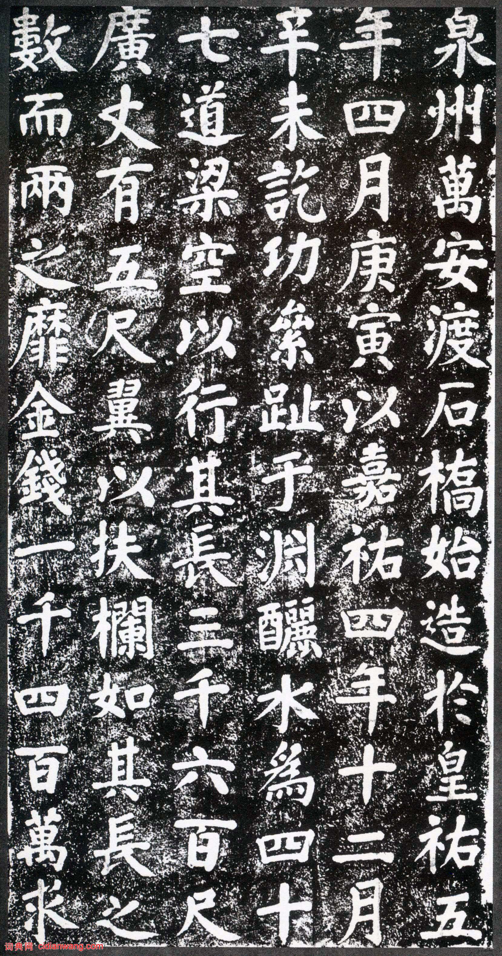 北宋蔡襄《萬安橋記》全文共153字,用楷體書寫,記載造橋的時間、年代、橋的長寬、花費的銀兩,參與的人物等,分刻在兩石碑上。