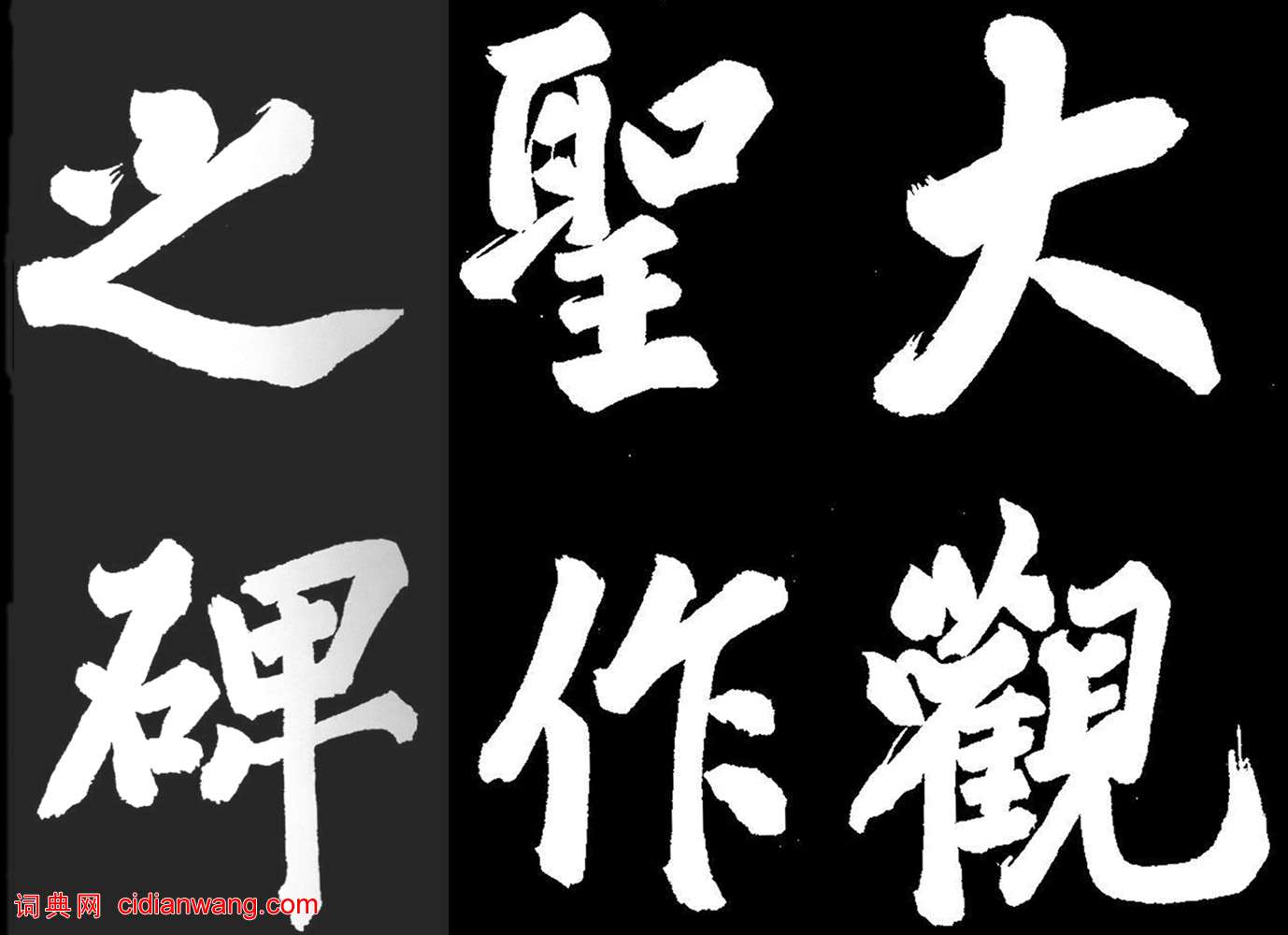 《大觀聖作之碑》碑文是宋徽宗趙佶用瘦金體所作,當時的書法博士李時雍摹寫上石後,由石工刻成的。額上“大觀聖作之碑”六字是蔡京所寫。此碑現藏於西安碑林第三室,據調查,河南新鄉、河北趙縣、山東泰安等地均有此碑出現。