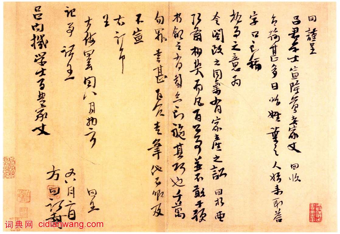 此帖又稱《致呂內機尺牘》,是寫給呂內機學士的尺牘。寫於元大德四年(1300年),方回已七十有四。