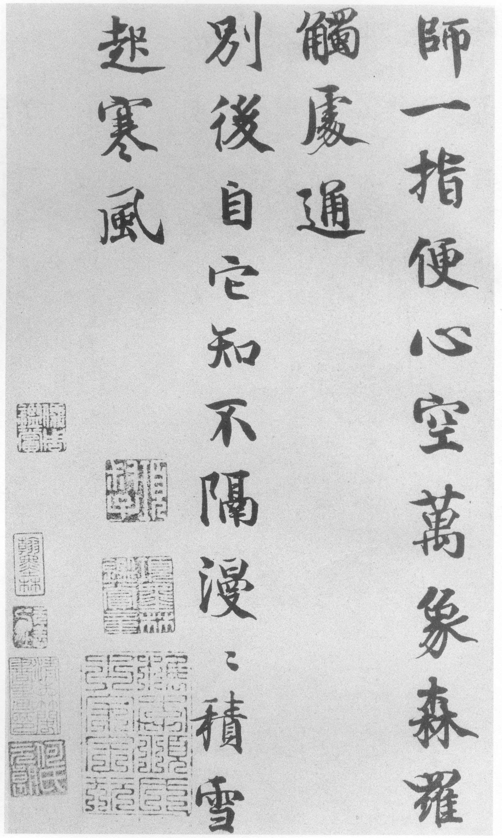 承師一指便心空,萬象森羅觸處通。 別後自它知不隔,漫漫積雪起寒風。