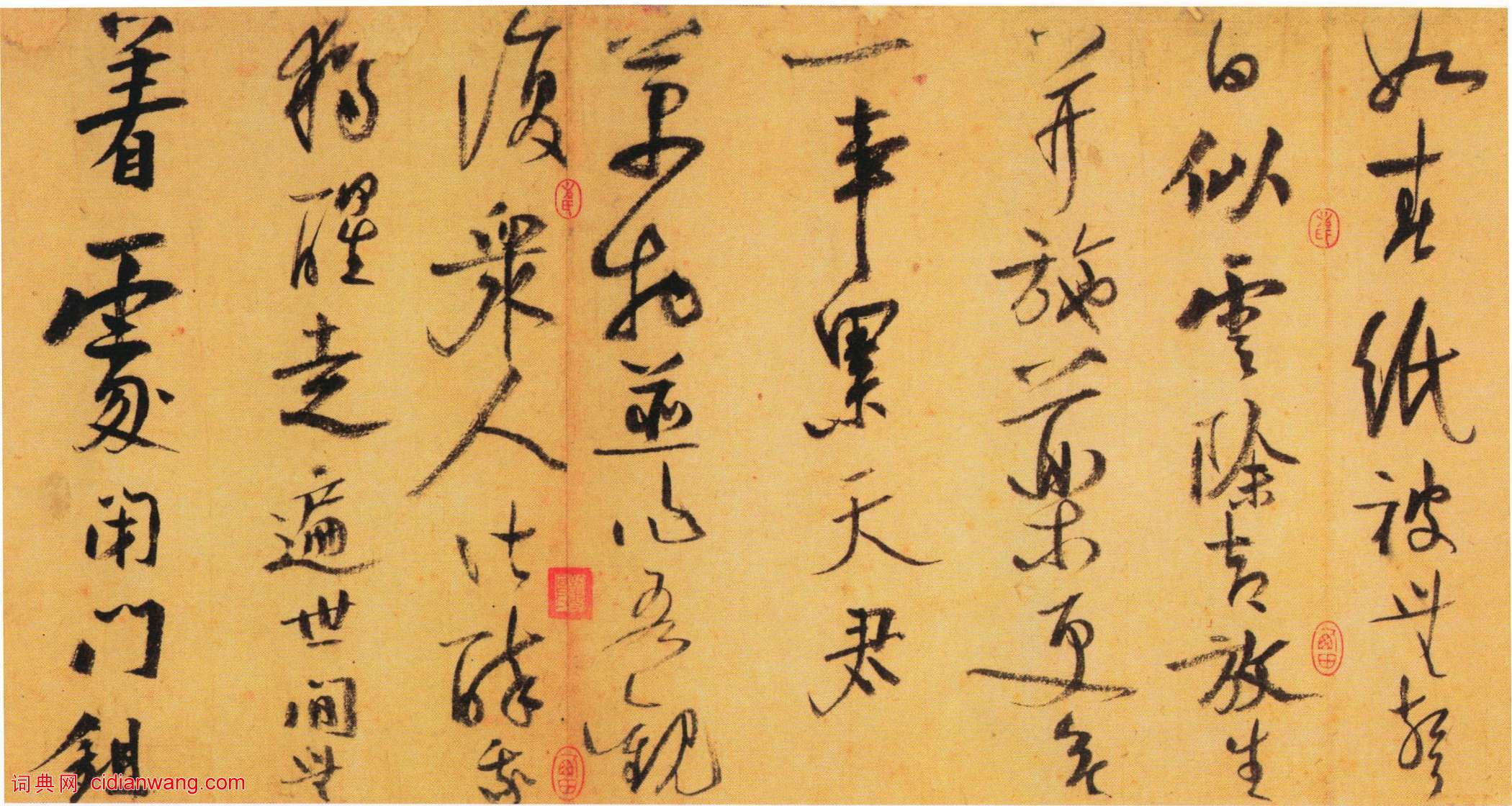 書法欣賞魏晉書法唐朝書法宋朝書法元朝書法明朝書法清朝書法近現代書法字典網>> 歷代書法>> 宋朝>> 陸遊行草《自書詩卷》(6)正文 陸遊行草《自書詩卷》(6)作者:陸游 書體:行草 首 頁 上一頁 1 2 3 4 5 6 7 下一頁 尾 頁 全文2017-10-18 9:21:00 陸游的相關書法作品:陸游《長夏帖》 陸遊行草《自書詩卷》 陸游·懷成都十韻詩 相關文章:楊守敬行書《六言詩軸》 (行書)楊守敬《六言詩軸》紙本行書 139×34cm 1914年作 湖北省博物館藏 ...汪由敦《行書臨蘇軾春帖子詞軸》 (行書)汪由敦《行書臨蘇軾春帖子詞軸》紙本行書 115.2×59.8cm 北京故宮博物...歐陽詢《 千字文》 (行書)歐陽詢書《千字文》,見於著錄的共有三本:一為蔡襄題識過的《草書千字文》,一為南宋...金農《隸書陳野水事軸》 (隸書)金農《隸書陳野水事軸》紙本隸書 124.1×42.9cm 上海博物館藏釋文:陳...李邕行書《李思訓碑》拓本 (行書)《李思訓碑》原題《唐故云麾將軍右武衛大將軍贈秦州都督彭國公謚曰昭公李府君神道碑》...祝允明·行書牡丹賦 (行書)此卷行書《牡丹賦》,有自題云:“甲申歲春三月望日,過湯氏西園觀牡丹盛開,廷用酒次...文徵明行書手卷 (行書)文徵明行書手卷 長 335厘米,高26厘米,紙本 西安碑林博物館藏圖片來自西安碑...張弼行草《送吳仲玉詩軸》 (行草)張弼《送吳仲玉詩軸》行草書 107.9×33.9cm 上海博物館藏釋文:送陝西...蔣廷錫《行書五言聯》 (行書)【釋文】篆香雕鴨換,銀甲小箏彈。蔣廷錫。清 蔣廷錫書《行書五言聯》,紙本 ,縱1...馮夢龍楷書《跋顧隱亮像》 (楷書)馮夢龍《跋顧隱亮像》,楷書。南京博物院藏。馮夢龍《跋顧隱亮像》釋文:爾非儒,談諧...
