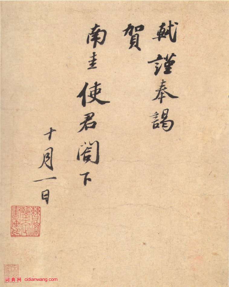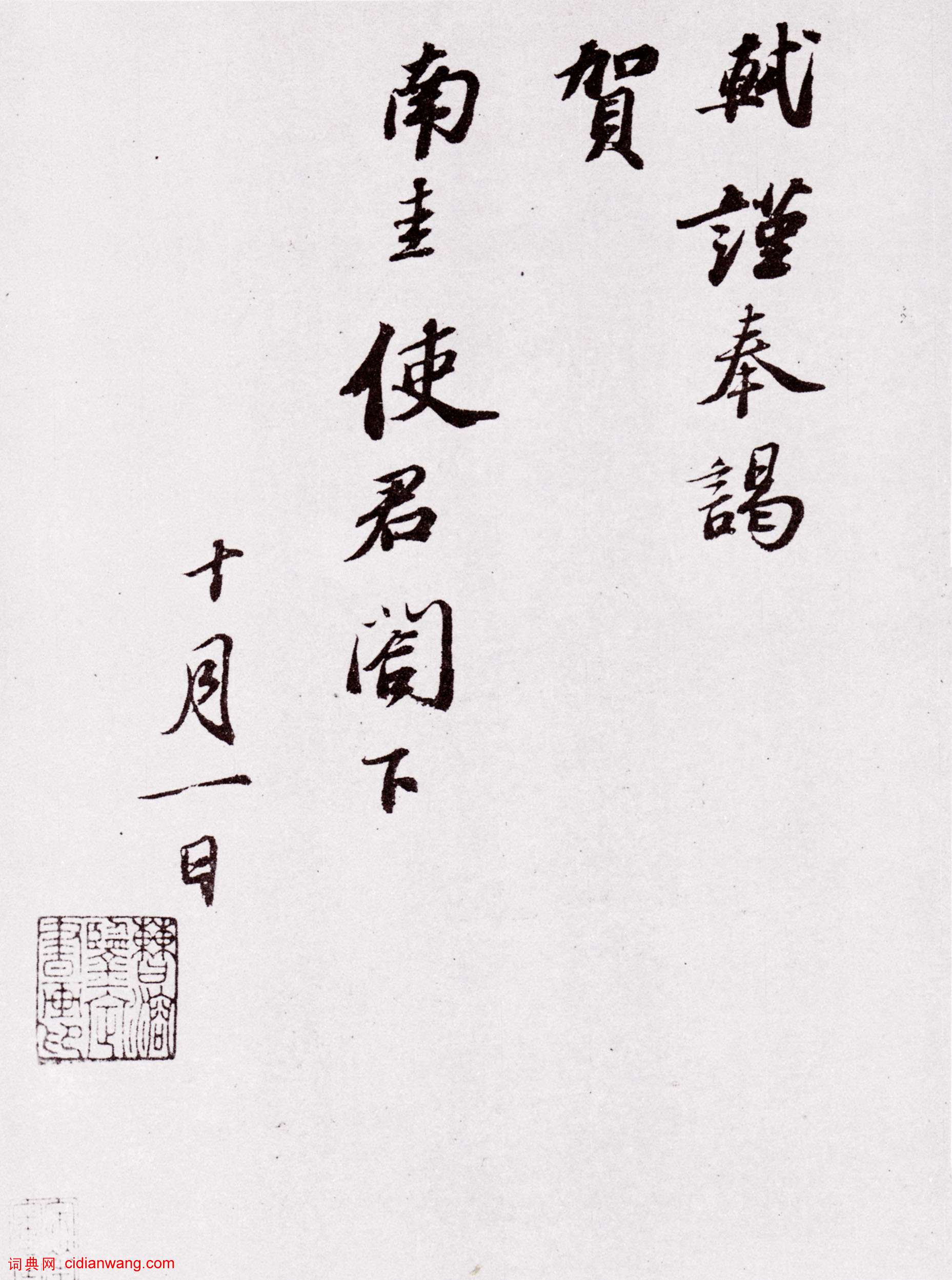 釋文:軾謹奉謁,賀,南圭使君閣下,十月一日。