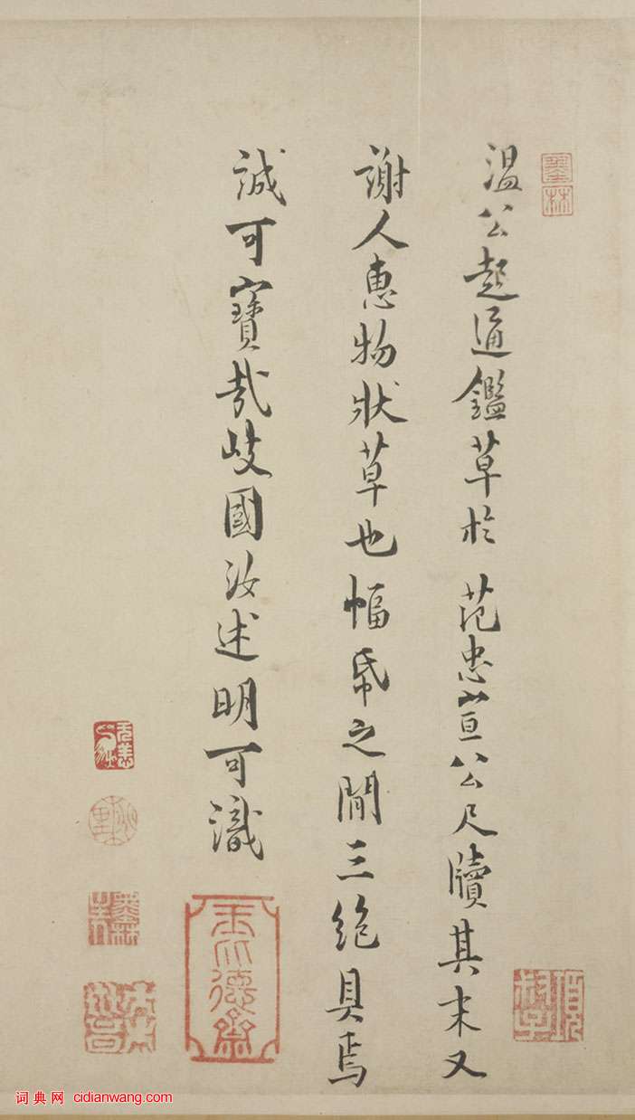 “溫公起《通鑑》,草於范忠宣公尺牘,其末又《謝人惠物狀》草也,幅紙之間三絕具焉,誠可寶哉!岐國汝述明可識。”