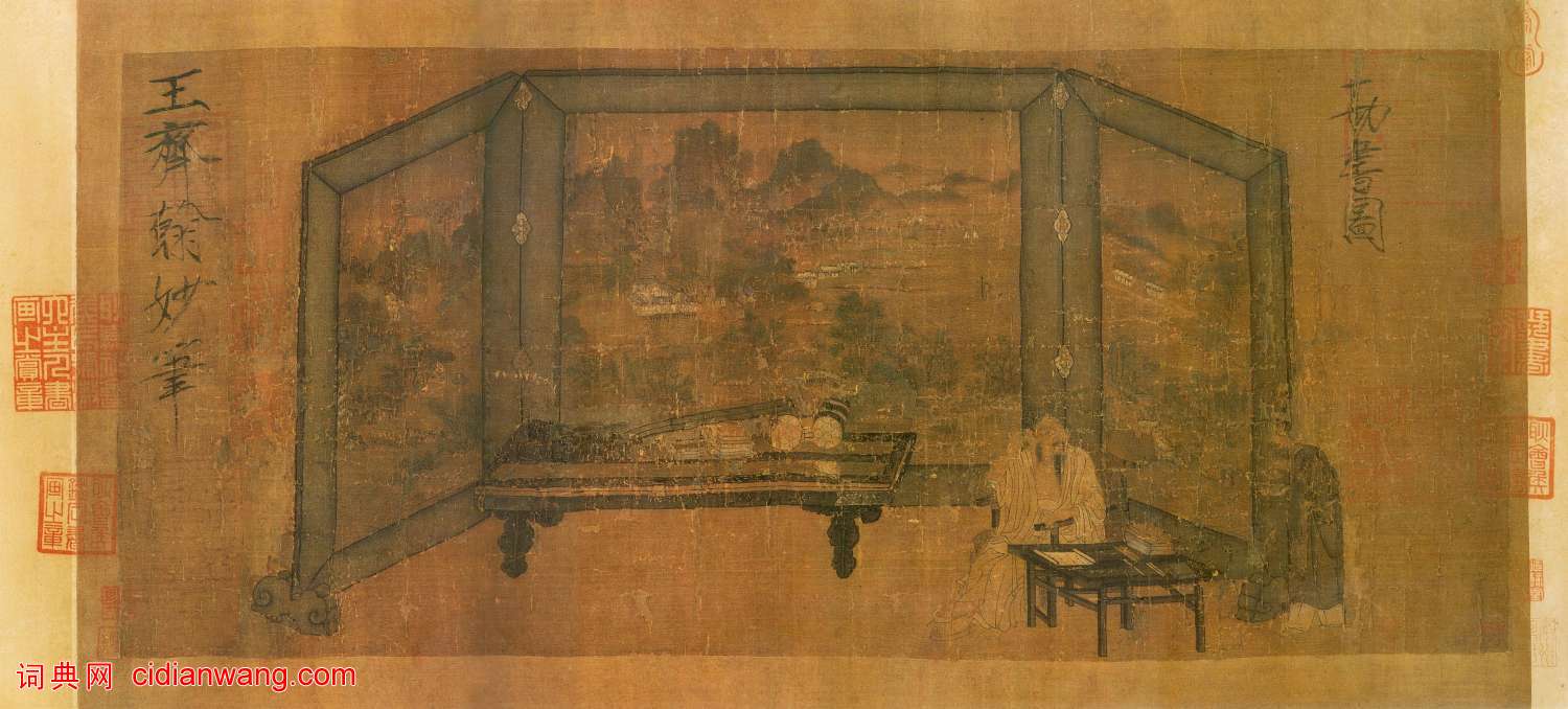 王齊翰《勘書圖》宋徽宗題識:勘書圖,王齊翰妙筆。(資料來自《中國書法》雜誌2005年第11期)