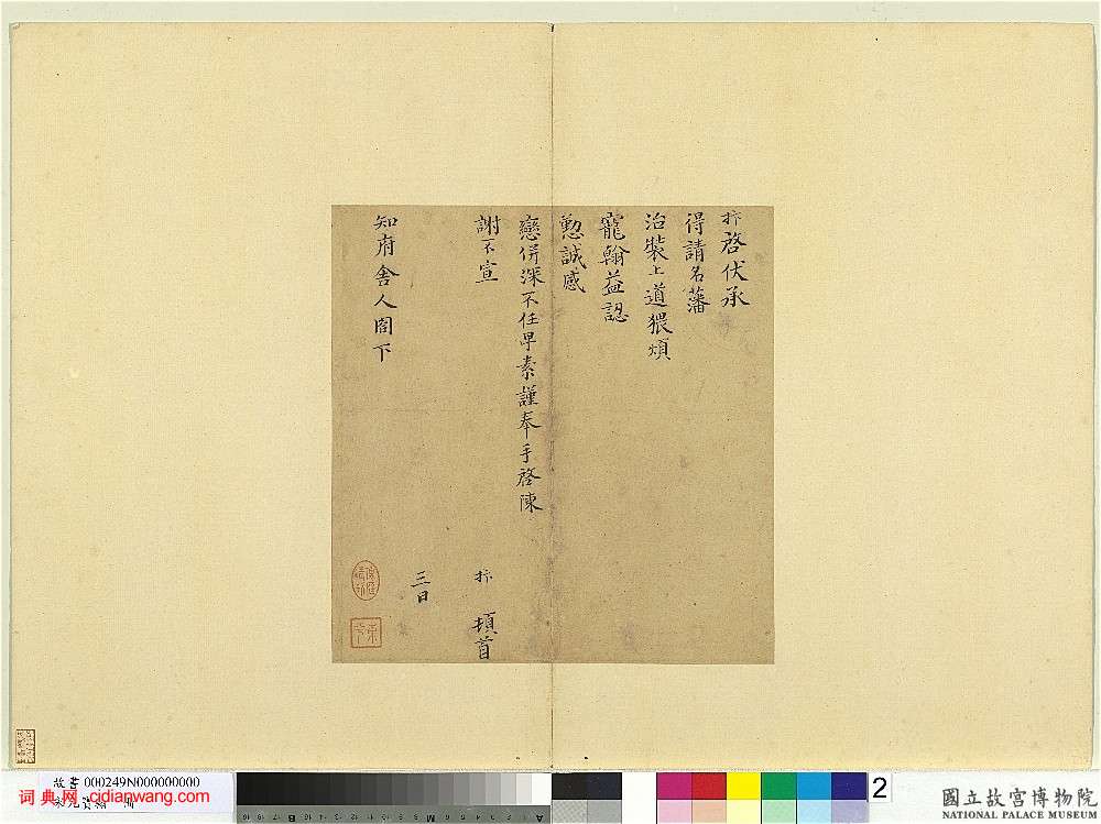 孫抃《名藩帖》 紙本楷書 29.6×28.1cm 台北故宮博物院藏