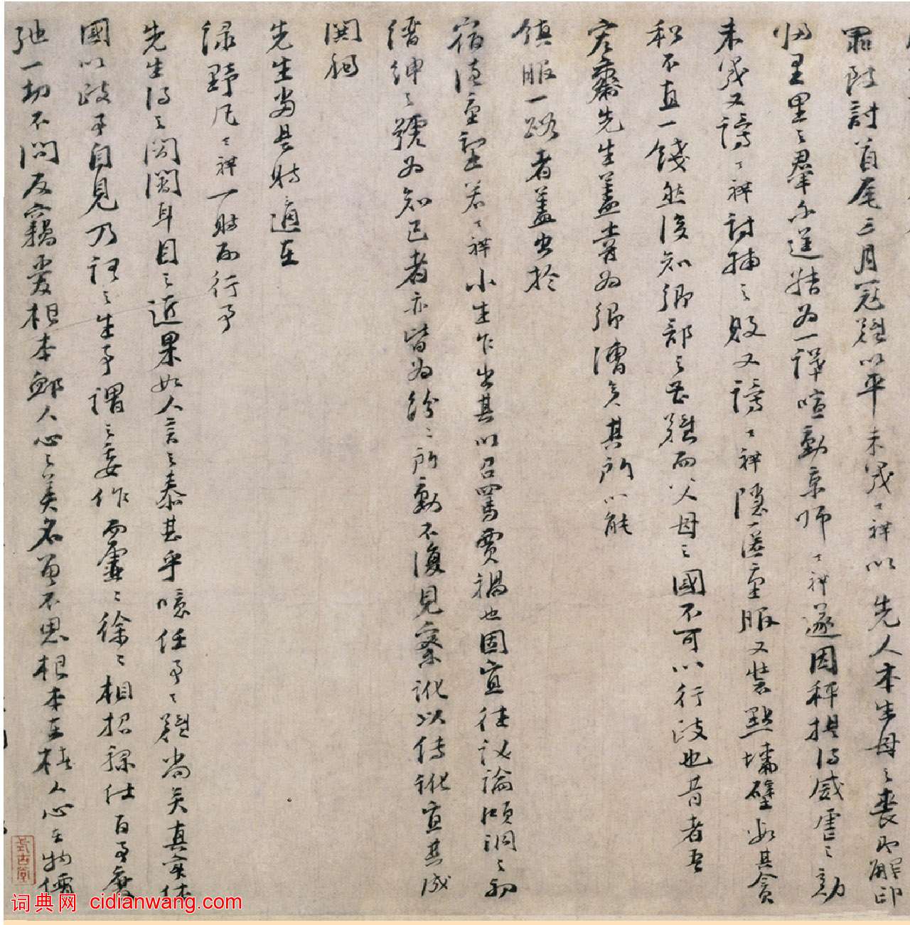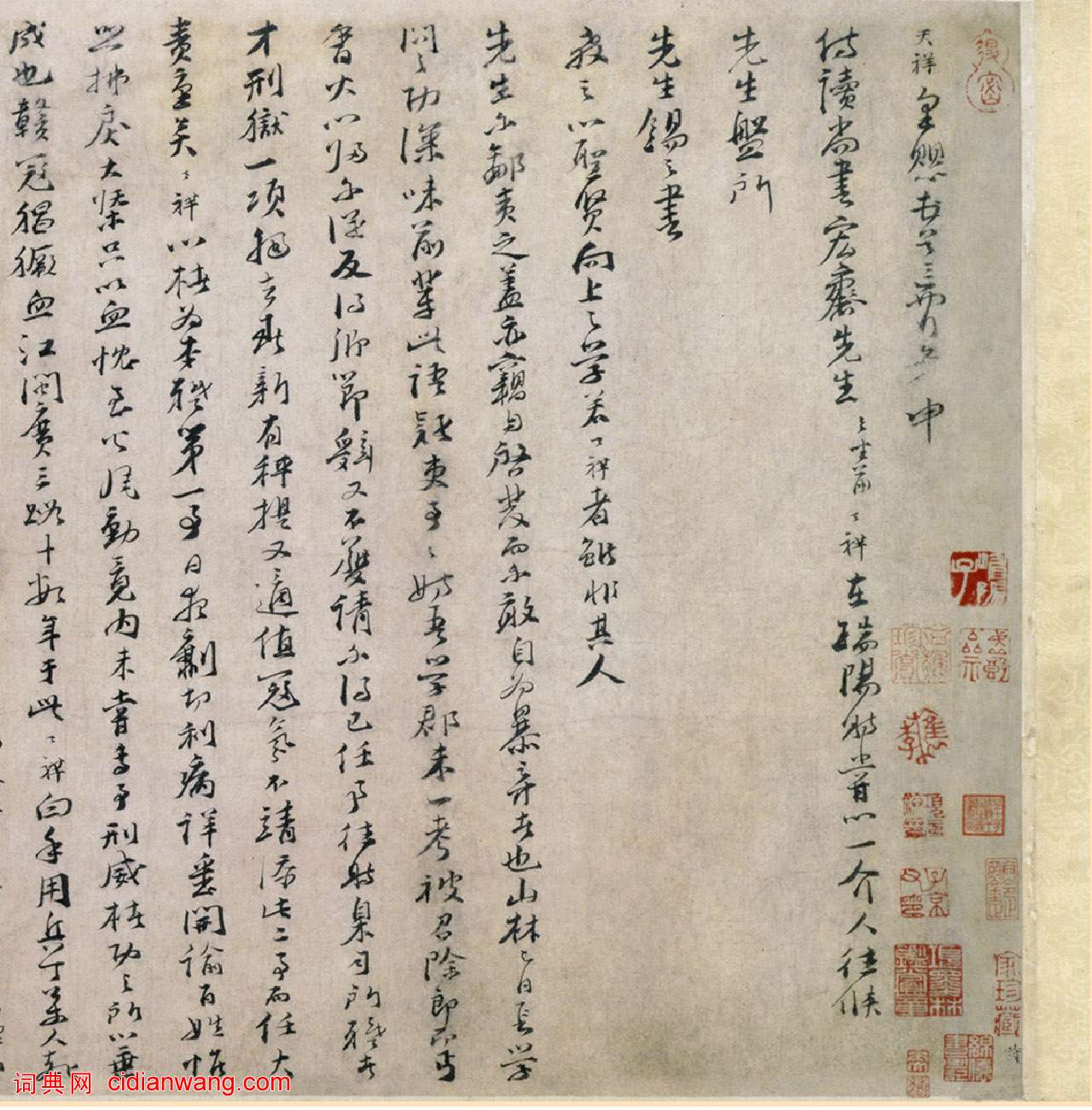 天祥皇懼頓首。三復□申,侍讀尚書宏齋先生之坐前。天祥在瑞陽時,嘗以一介人往候先生盤所,先生賜之書,教之以聖賢向上之學。若天祥者,雖非其人,先生不鄙夷之,蓋亦竊自啓發,而不敢自爲暴棄者也。山林之日,長學問之功,深味前輩此語。疑吏事事妨吾學,郡未一考,被召除郎,而丐香火以歸。不從,反得卿節,辭又不獲請,不得已任事。往時臬司所職者,才刑獄一項,獨去春新有秤提,又適值寇氛不靖,添此二事,而任大責重矣。天祥以楮爲本職第一事,日夜靡切利病,詳悉開諭,百姓惟恐拂戾。大概只以血忱至公,風動竟內,未嘗專事刑威,楮功之所以垂成也。贛寇猖獗,血江、閩、廣三路,十數年於此。天祥白手用兵丁萬人,聲罪致討,首尾三月,寇難以平。未幾,天祥以先人本生母之喪,即解印歸裏。裏之群不逞結爲一,嘩喧動京師。天祥遂因秤提得威虐之劾。未幾,又謗天祥討捕之敗,又謗天祥隱匿重服,又裝點牆壁,數其貪私,不直一錢。然後知鄉鄙之甚難,而父母之國不可以行政也。昔者,吾宏齋先生,蓋嘗爲鄉漕矣。其所以能鎮服一路者,蓋出於宿德重望。若天祥小生乍出,其以召罵賈禍也固宜。往議論澒洞之初,縉紳之號爲知己者,亦皆爲紛紛所動,不復見察,訛以傳訛,宜其成哄。獨先生當時適在綠野,凡天祥一時所行事,先生得之閭閻耳目之近,果如人言自泰甚乎。噫,任事之難尚矣。真實體國,以政事自見,乃謂之生事,謂之妄作。而虛虛徐徐,相招祿仕,百事廢弛,一切不問,反竊愛根本,恤人心之美名。曾不思根本在楮,人心在物價。無財用,何以□人,無政事,何以立國。奈何其是非顛倒之甚邪。先生忠忱愛國者也,憤世疾邪者也。區區肺肝,安得從先生一日傾倒,求一語以自信。茲者伏聞先生以新天子蒲輪束帛之勸,爲時一出,自大司寇進長六卿,典事樞,耑人政柄,使衛武公之爵之德之齒,千有餘歲之下,煥然重光,仆何幸身親見之。天祥謹頓首爲國賀,爲世道賀,不獨爲先生賀也。天祥謗毀之餘,賴君相保全,無大督過。束禮書,入深林,溫理故讀,爲吾所爲,自是浩然方外之想矣。先生即日膏澤六合,仆也蓑笠太平,與受公賜。臨書馳仰,神爽欲飛。伏乞台照,右謹具申。正月日 承心制文天祥劄子。