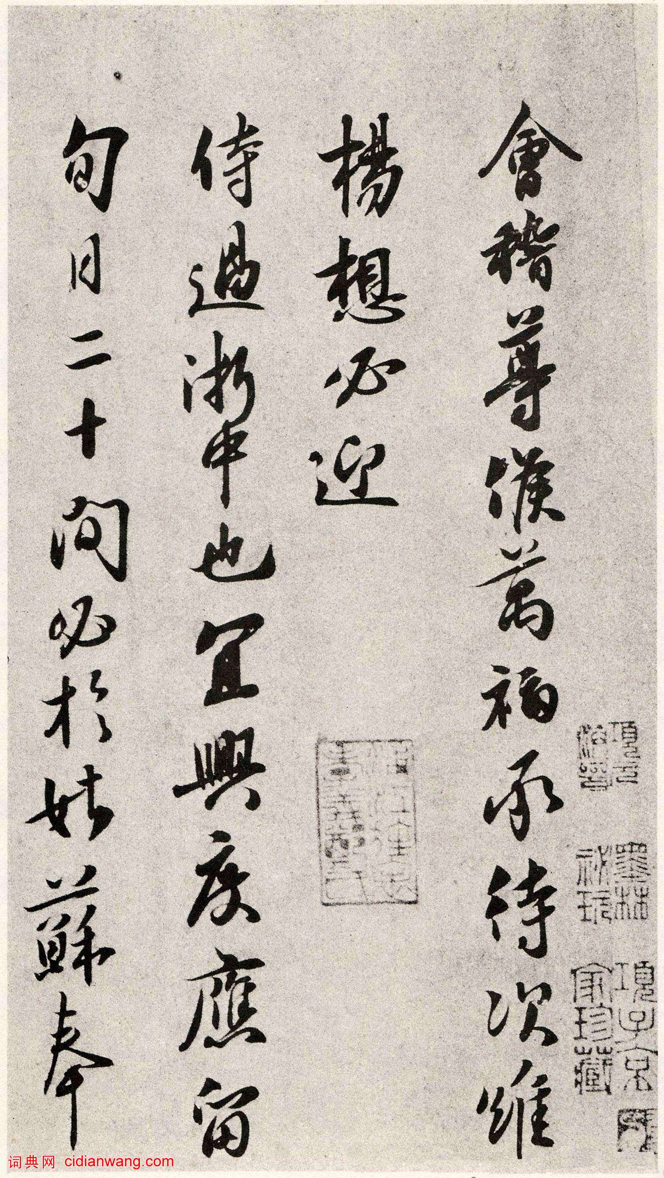 會稽尊候萬福。承待次維揚。想必迎侍過浙中也。宜興度應留旬日。二十間必於姑蘇奉見矣。冀盡從容。惇別紙。