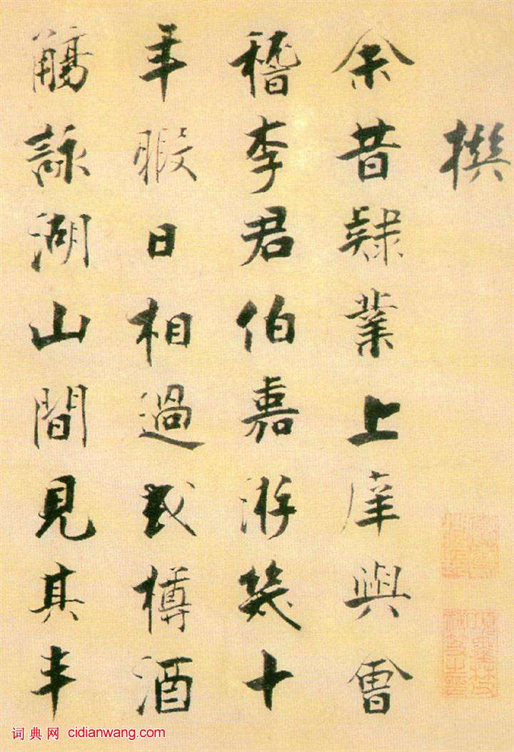 資源下載魏晉書法唐朝書法宋朝書法元朝書法明朝書法清朝書法近現代書法字典網>> 歷代書法>> 宋朝>> 張即之楷書 《書李衎墓志銘》卷(2)正文 張即之楷書 《書李衎墓志銘》卷(2)作者:張即之 書體:楷書 首 頁 上一頁 1 2 3 4 5 6 7 8 9 10 下一頁 尾 頁 全文2017-12-15 11:01:33 張即之的相關書法作品:張即之小楷《華嚴經》殘冊 張即之行書《台慈帖頁》 張即之小楷《佛遺教經》 張即之行書《致尊堂太安人尺牘》 張即之行草《疇昔帖》 張即之楷書《雙松圖歌卷》 張即之大字楷書《書杜詩卷》 張即之行草《莊幹帖》 張即之行書《棐茗帖》 相關文章:張伯英《行楷散此偶有八言聯》 (行楷)張伯英《行楷“散此偶有”八言聯》 刊於《書法》2011年第7期 ...沈曾植《行書節臨李思訓碑扇面》 (行書)沈曾植《行書節臨李思訓碑扇面》紙本行書 19.5×52cm 浙江省博物館藏 釋...中國10大隸書名碑!一、《石門頌》評價:隸中草書,字隨石勢,參差錯落,縱橫開闔,灑脫自如,意趣橫生。...范成大草書《雪後帖》 (草書)范成大《雪後帖》紙本 31.9×51.3cm 台北故宮博物院藏 范成大《雪後帖...林散之《自作詩附寄楊嘯翁二律並書》 (行書)林散之《自作詩附寄楊嘯翁二律並書》 1914年 釋文: 款署:甲寅九月十三午時,...董其昌楷書《金剛經》 (楷書)罕見明代大書法家董其昌楷書欣賞《金剛經》(無缺字本),主編:楊璐,中國書店出版社...非篆非隸《祀三公山碑》 (篆書)《祀三公山碑》《祀三公山碑》是名垂書史的極有價值的碑刻之一。漢元初四年(117)...陳敬宗·跋《褚摹蘭亭序》 (行書)陳敬宗跋《褚摹蘭亭序》,北京故宮博物院藏。唐寅·自題《李端端圖》 (行書)唐寅《李端端圖》絹本設色 122.7×57.3cm 南京博物院藏鈐印:唐伯虎(...吳寬行書《跋朱熹“上時宰二札”》 (行書)吳寬《跋朱熹“上時宰二札”》紙本行書 縱33.8cm 北京故宮博物院藏 ...
