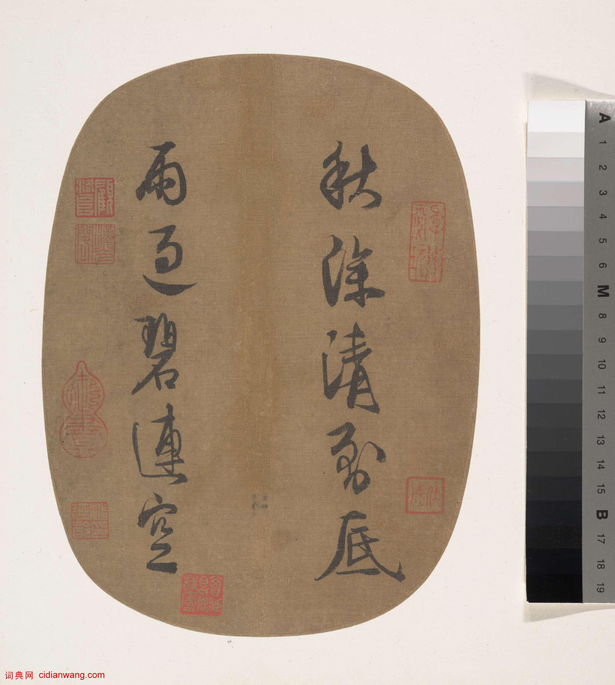 書法欣賞魏晉書法唐朝書法宋朝書法元朝書法明朝書法清朝書法近現代書法字典網>> 歷代書法>> 宋朝>> 趙昀行書《深秋聯團扇》正文 趙昀行書《深秋聯團扇》作者:趙昀 書體:行書 宋理宗趙昀《深秋聯團扇》 (23.7 x 17.8 cm 美國紐約大都會博物館藏 顧洛阜遺贈 釋文:秋深清到底,雨過碧連空。2017-12-20 14:40:59 趙昀的相關書法作品:趙昀行書《深秋聯團扇》 趙昀行書《禪室詩團扇》 趙昀楷書《潮聲聯團扇》 趙昀行書《暮春詩團扇》 趙昀行書《湖上詩團扇》 相關文章:莫是龍《行書偶述文扇面》 (行書)莫是龍《行書偶述文扇面》紙本 上海博物館藏 釋文:在家妻伴,出家...豐坊·跋張旭《草書古詩四首》 (楷書)豐坊跋張旭《草書古詩四首》,遼寧省博物館藏。嘉靖二十八年(1549 年),豐坊應...周儀《桃花源記》 (小楷)周儀《桃花源記》,小楷。現藏愛爾蘭都柏林市切斯特·比蒂圖書館。此作題於顧符稹《...倪元璐 黃道周 瞿式耜《明勝國三忠遺墨卷》 (行草)附錄:倪元璐/黃道周/瞿式耜《明勝國三忠遺墨卷》 (文/戴淑芳)倪元璐,字...楊峴《隸書四屏》 (隸書)楊峴《隸書四屏》133.0×33.0cm 美國弗利爾美術館藏 ...文徵明·跋祝允明草書赤壁賦冊 (小楷)明 文徵明小楷《跋祝允明草書赤壁賦冊》——錢泳在《履園叢話》中說:“工書者不精小...篆刻里,幾個必備的處理方法平正、勻落這是最基本的要領,就是要使印文安排得勻稱妥貼。但值得注意的是,不能將筆...楊凝式《韭花帖》 (行書)羅振玉藏本 見《百爵齋藏名人法書》清乾隆內府藏本 無錫博物館藏《韭花帖》釋文:晝...沈兼士書法,不愧為沈尹默的弟弟! (行書)沈兼士|吳興(今浙江湖州)人。沈尹默之弟。中國語言文字學家、文獻檔案學家、教育學...卞永譽·跋《褚摹蘭亭序》 (行書)卞永譽跋《褚摹蘭亭序》,題跋前後共五段。北京故宮博物院藏。卞永譽(1645-17...