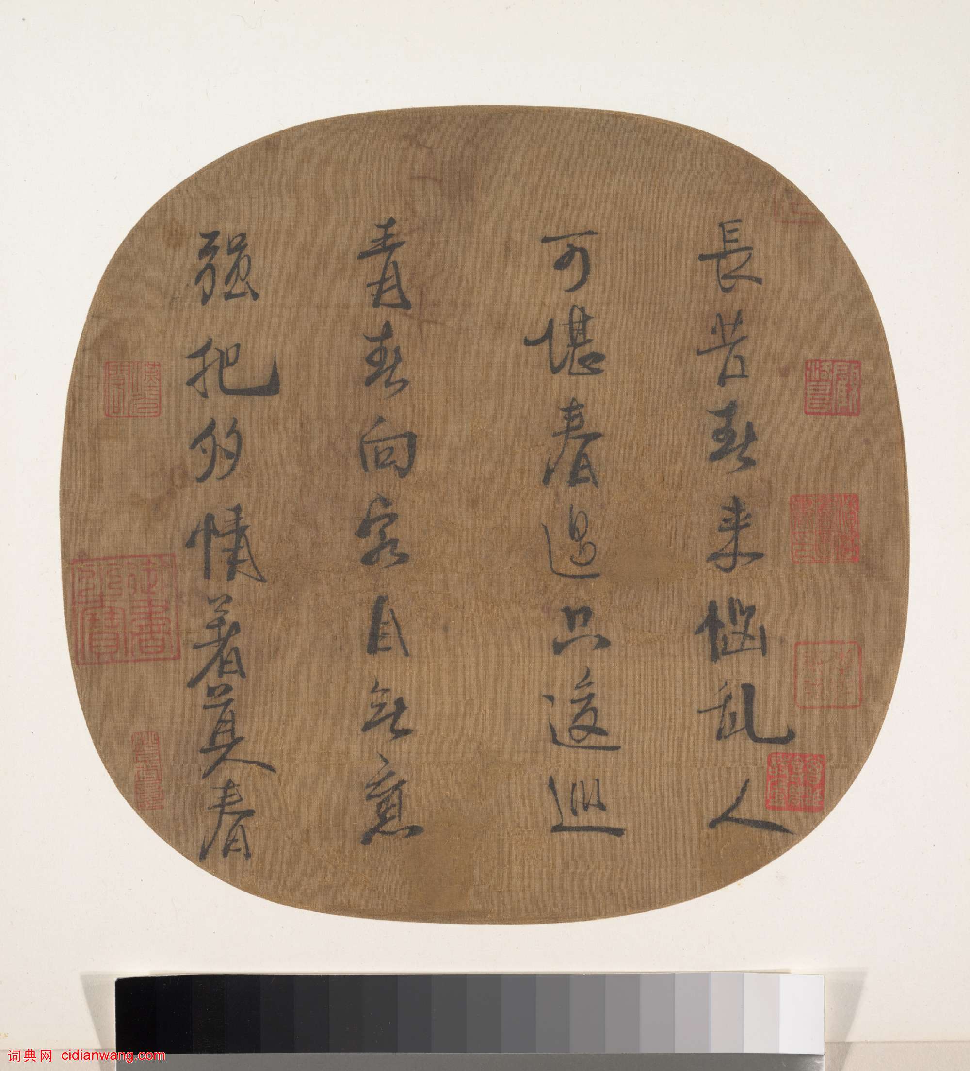 書法欣賞魏晉書法唐朝書法宋朝書法元朝書法明朝書法清朝書法近現代書法字典網>> 歷代書法>> 宋朝>> 趙昀行書《暮春詩團扇》正文 趙昀行書《暮春詩團扇》作者:趙昀 書體:行書 宋理宗趙昀《暮春詩團扇》 24.4 x 23.5 cm 美國紐約大都會博物館藏 顧洛阜遺贈 2017-12-20 14:30:31 趙昀的相關書法作品:趙昀行書《暮春詩團扇》 趙昀楷書《潮聲聯團扇》 趙昀行書《禪室詩團扇》 趙昀行書《湖上詩團扇》 相關文章:莊麟·題《翠雨軒圖》 (章草)【釋文】持敬以翠雨名其軒,諸名公為詩文題卷。余因隨牒京師,與持敬會於朝天宮,出此...釋擔當《行草書四言詩軸》 (行草)《行草書四言詩軸》 紙本 135.2X31.3cm 南京博物院藏 ...李邕行書《法華寺碑》 (行書)《法華寺碑》又名《秦望山法華寺碑》是碑久佚,為李邕於唐開元廿三年(735)十二月...蔡襄的書法,被蘇軾推為第一 ! (行書)蔡襄學識淵博,書藝深湛,又精於茶道,德性端厚亦為世人所敬,其書法與蘇軾、黃庭堅、...安弘嵩《大智度論殘卷》 (隸楷)安弘嵩《大智度論殘卷》(局部)紙本,隸楷書 25.1×342.5厘米 北京故宮...趙孟頫《蘭亭序十三跋》殘本 (行書)趙孟頫《蘭亭序十三跋》殘本(選頁)紙本冊頁 33.2X24.4cm 趙孟頫於至大...林散之跋黃賓虹《黃山臥遊》 (行書)▶釋文:黃山臥遊|前後雲海,一松一石無不入畫,撫琴動操,欲令眾山皆響。 虹叟林散...李應禎《行書致煥伯手札》 (行書)李應禎《行書致煥伯手札》 湖北省博物館藏釋文:奉請過此說話,毋以雨濕為辭,專候、...蘇軾行書《書杜工部榿木詩卷帖》 (行書)蘇軾《書杜工部榿木詩卷帖》澄心堂紙本行書 台北故宮博物院藏(蘭千山館寄藏)《榿木...唐寅行書《望湘人·春日花前詠懷詩扇面》 (行書)唐寅《望湘人·春日花前詠懷詩扇面》金箋行書 19.6×52.7cm 南京博物...