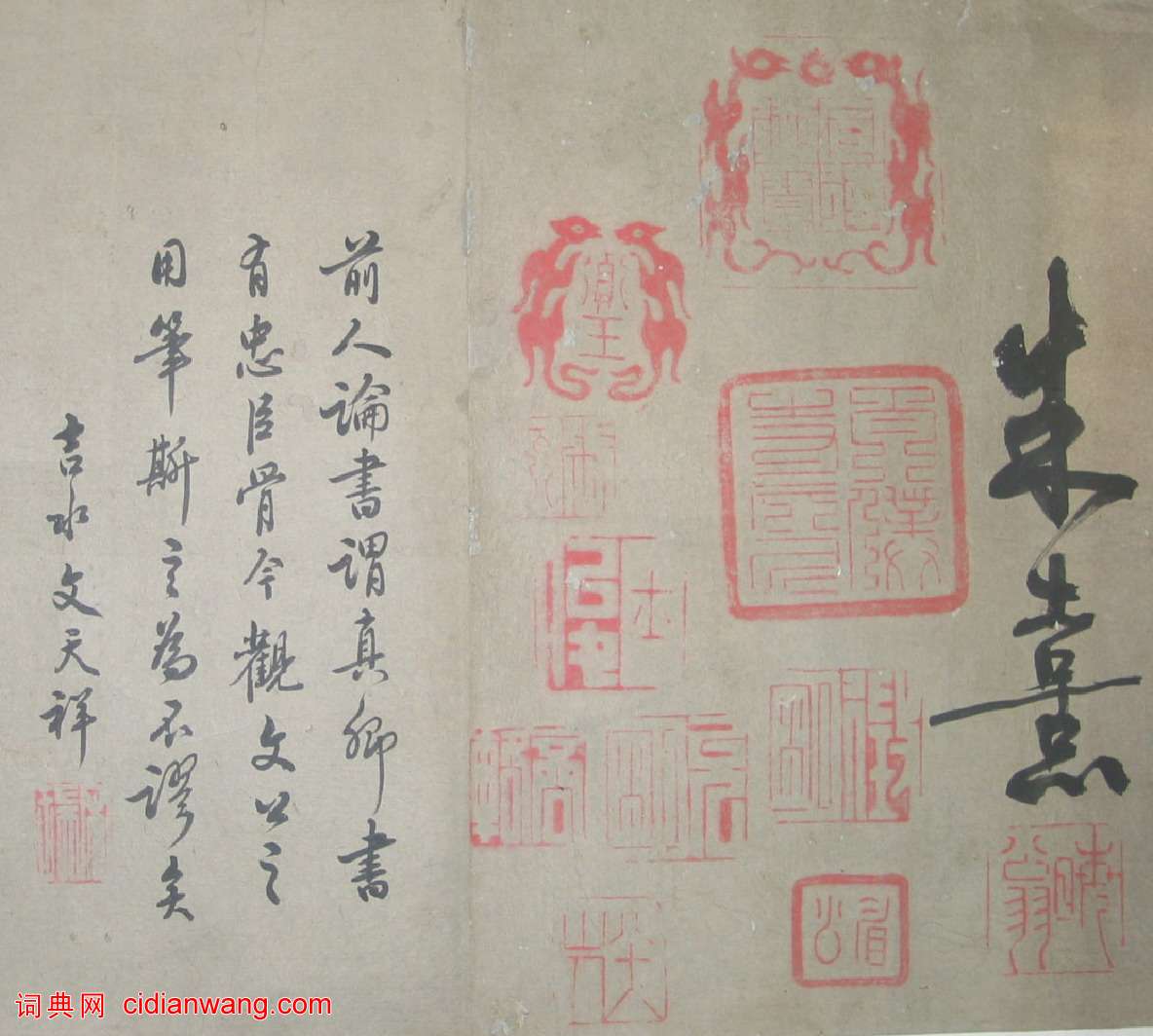 【文天祥跋】 前人論書, 謂真卿書有忠臣骨, 今觀文公之用筆, 斯言為不謬矣。吉水文天祥。